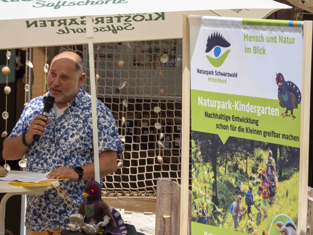 Der Bürgermeister der Gemeinde Glatten Tore-Derek Pfeifer hebt in seiner Rede den regionalen Bezug hervor. „Über die Naturpark-Projekte lernen die Kinder unsere Region kennen – mit ihrer Natur und den Menschen, die sie gestalten. Das schafft Verbundenheit, gibt ihnen ein Gefühl von Geborgenheit und Verantwortungsbewusstsein für ihre Rolle in unserer Gemeinschaft“, führt Tore-Derek Pfeifer aus.