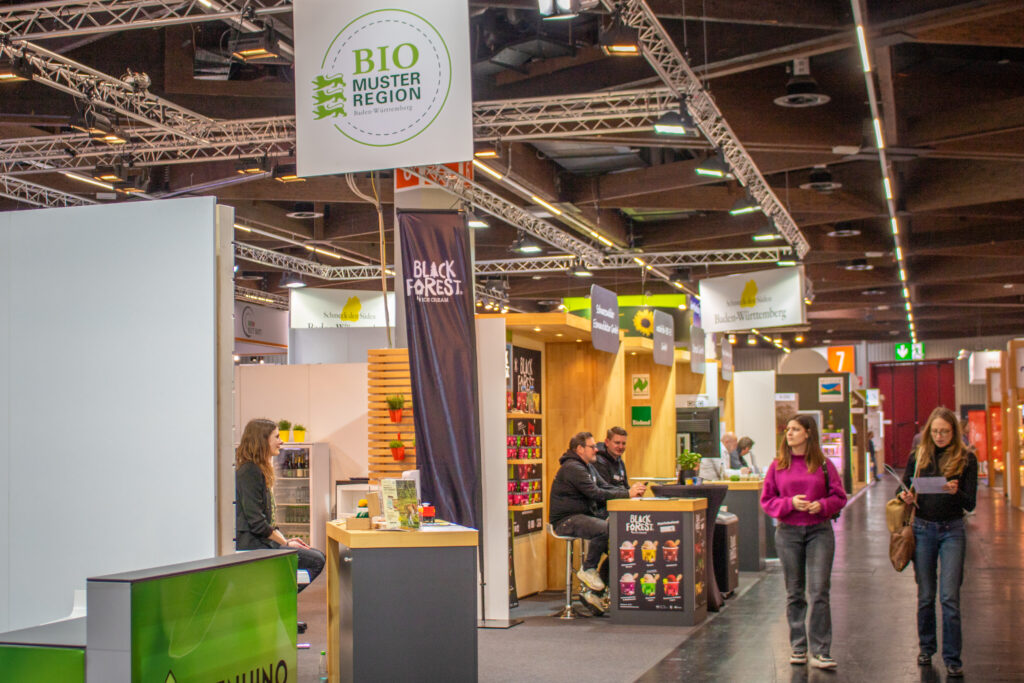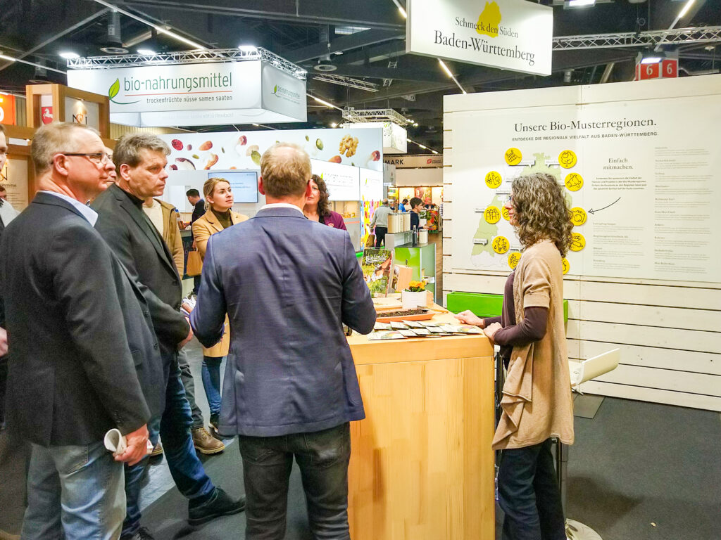 Ein Highlight der Messe war der Gemeinschaftsstand des Landes Baden-Württemberg, der verschiedene Stände vereinte. So auch die Bio-Musterregionen Baden-Württembergs oder unser Naturpark Partner Schwarzwaldmilch. Unter den Vertretern dieses Standes befand sich auch Dr. Laura Willer, die die Biomusterregion Mittelbaden+ und den Naturpark Schwarzwald Mitte/Nord vertrat. In zahlreichen Gesprächen konnte sie neue Kontakte knüpfen und über die wichtige Arbeit der Biomusterregionen informieren.