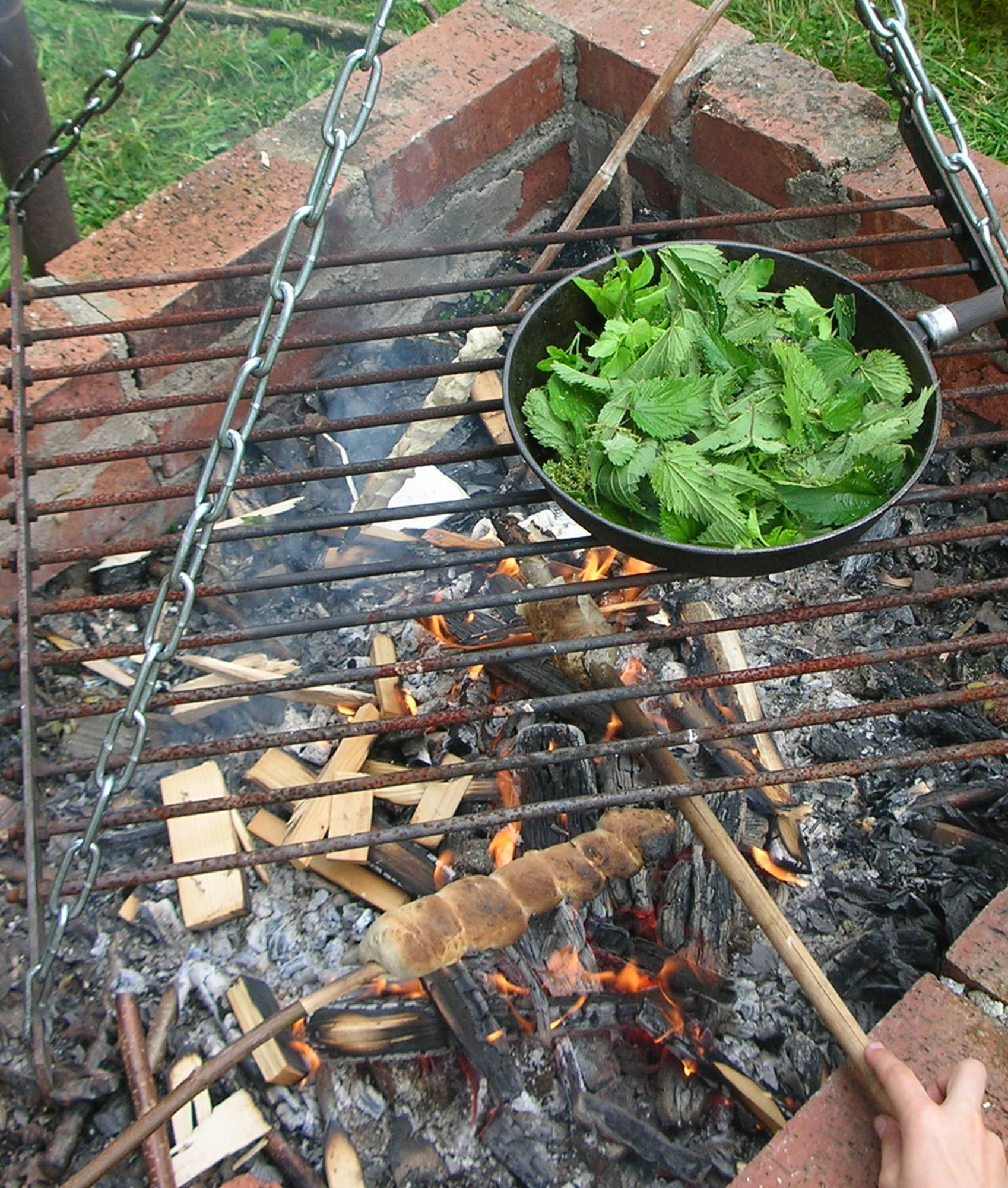 Blätter von Giersch und Brennnessel ernten, waschen und trockenschleudern. In einer Pfanne mit einem guten Öl kurz kross anbraten. Mit einer Würzmischung aus Salz, Paprika und Curry kräftig abschmecken. In einer alten Pfanne auf dem Lagerfeuer gebrutzelt sind diese Chips ein besonderes Erlebnis, gerade auch für Kinder.