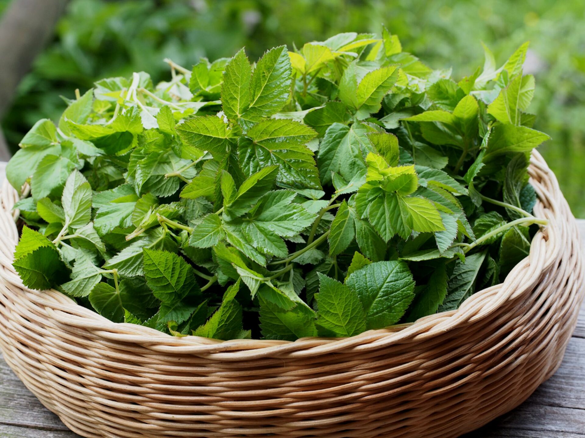 - Einige Stängel Giersch, kombinierbar mit Wiesen-Labkraut, etwas Gundermann, Pfefferminze oder Zitronenmelisse.