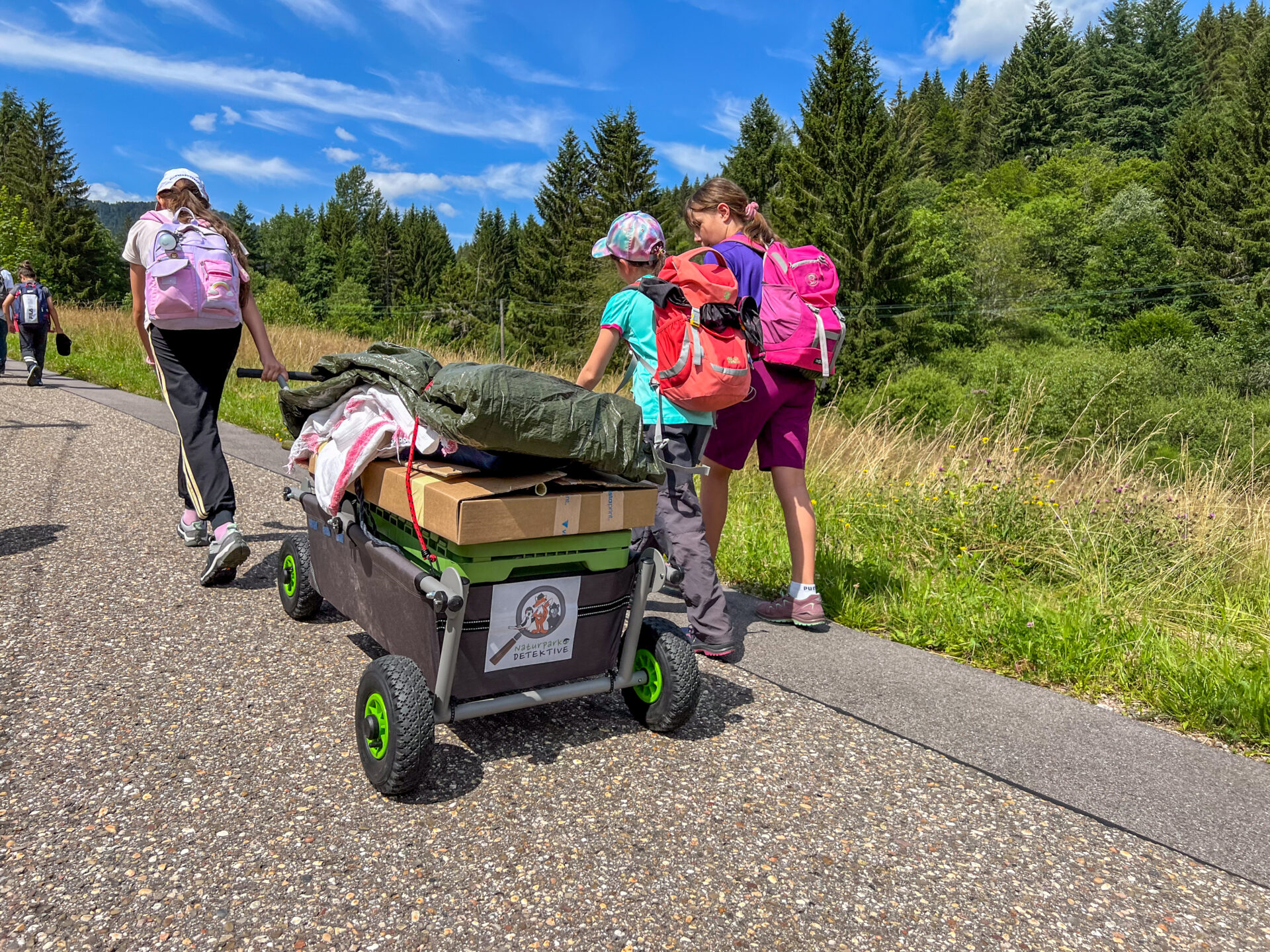 Naturpark-Schule aus Bühlertal mit Schwarzwald-Guide und Entdeckerwagen der Naturpark-Detektive auf Tour. Ein Bollerwagen mit drei Naturpark-Detektiven an Bord und einem Schwarzwald-Guide dabei – klingt ungewöhnlich und ziemlich abenteuerlich. Dabei handelt es sich um ein neues Umweltbildungs-Erlebnisangebot des Naturparks Schwarzwald Mitte/Nord für…