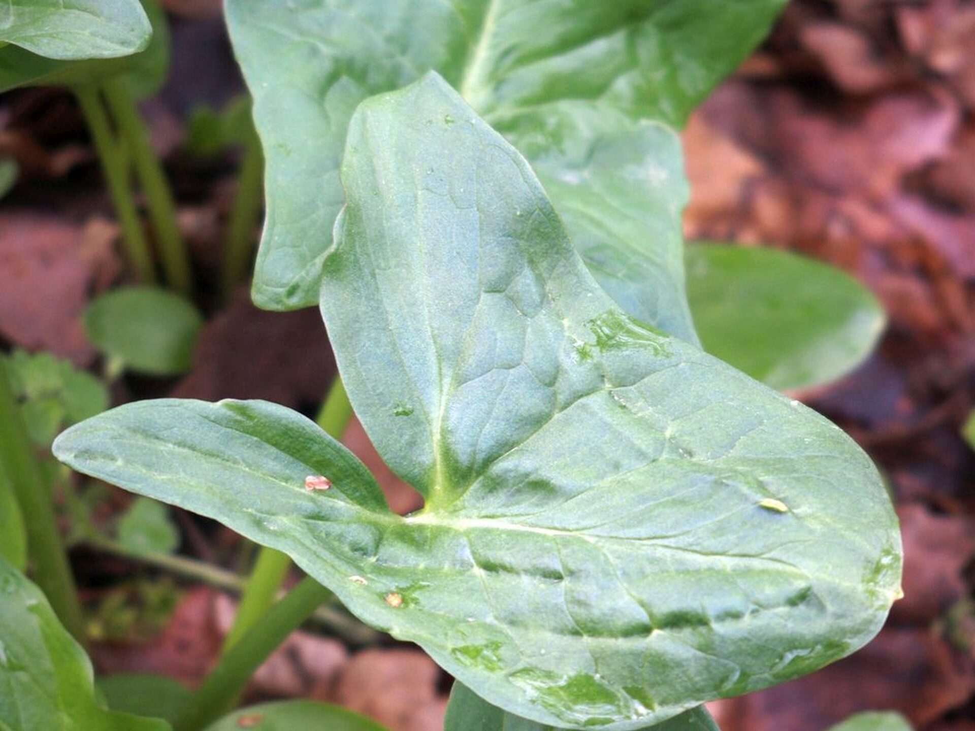 Doch zurück zur Verwechslungsgefahr! Sie ist erst gebannt, wenn ihr euch die giftigen Vertreter ebenfalls genau anschaut. Es kann nämlich vorkommen, dass sich im üppigen Bärlauchbestand einige von ihnen verstecken. Also heißt es genau hinschauen. Die Blätter des Aronstabs (Arum maculatum) weisen im fortgeschrittenen Stadium am Stängelansatz zwei markante Zipfel auf, ähnlich wie beim Sauerampfer. Die jungen Blätter haben diese markanten Zipfel jedoch noch nicht. Das wichtigste Unterscheidungsmerkmal sind dann die Blattnerven, die beim Aronstab netzartig verlaufen und beim Bärlauch parallel.
