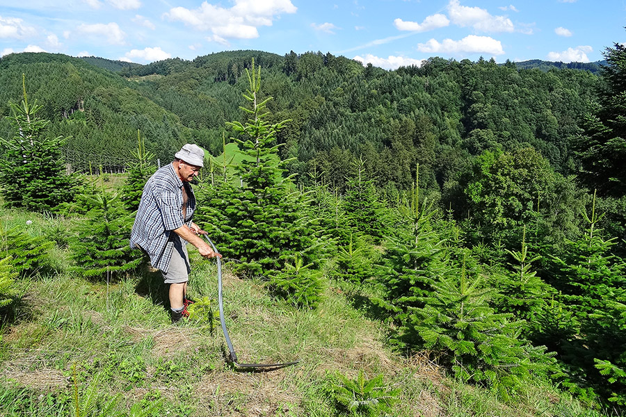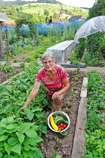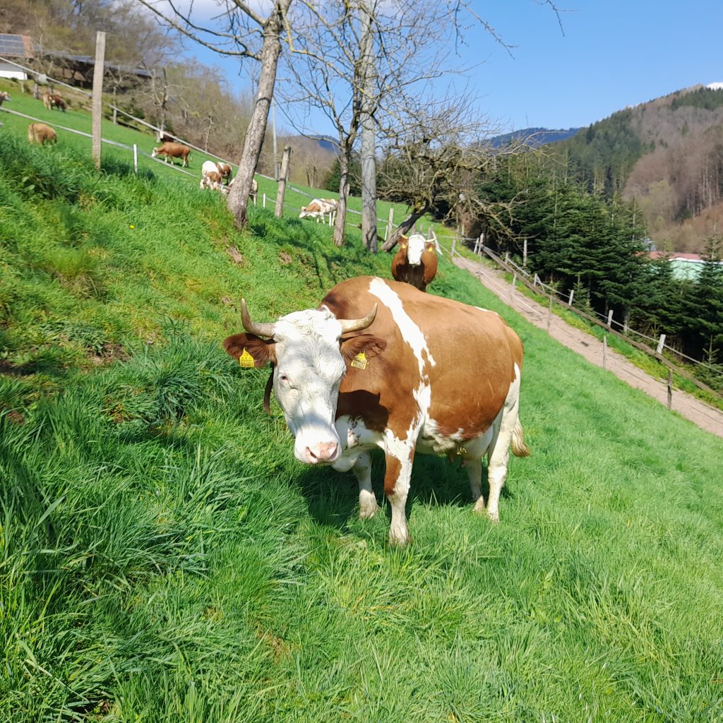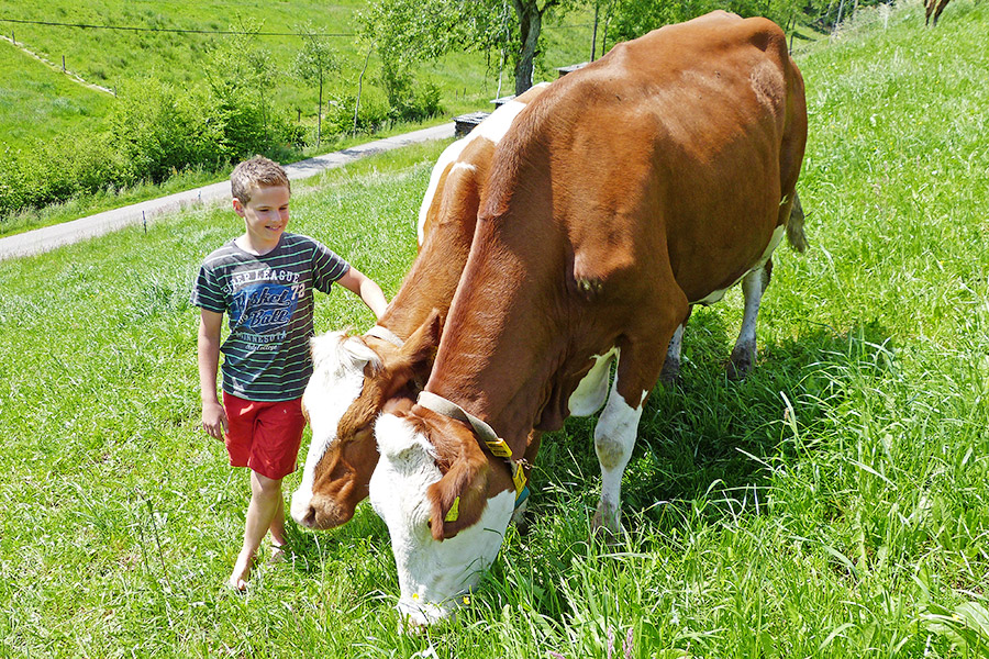 Lehmann: Wir haben vor allem Kühe und produzieren Milch. Aber wir haben auch Streuobst und Heidelbeeren. Die Streuobstbäume geben auf den Weiden den Kühen Schatten. Das Obst verwerten wir vielfältig. Das erste Fallobst mit schlechterer Qualität wird von unseren Kühen aufgelesen. Die Fallblätter im Herbst versorgen die Kühe zusätzlich mit Mineralien. Und unsere Obstbäume, Heidelbeeren, Trauben sowie unser Garten werden mit natürlichem Kuhmist gedüngt. Außerdem bewirtschaften wir ein Waldstück und bauen Weihnachtsbäume an. Zur Selbstversorgung haben wir einen Bauerngarten angelegt. Außerdem halten wir Schweine.