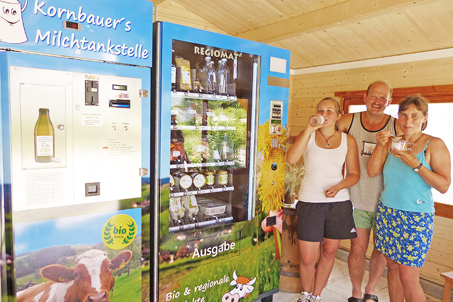 Lehmann: Seit 2015 vermarkten unsere frische demeter-Rohmilch auch direkt ab Hof über eine Milchtankstelle. Durch die Direktvermarktung haben wir direkten Kontakt zu unseren Kunden. Sie dürfen bei uns auf dem Hof dabei zusehen, wie wir produzieren.