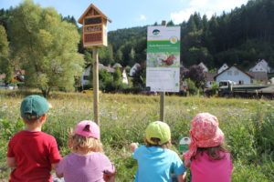 Neben dem Artenschutz ist das zweite große Ziel des Projekt die Aufklärung und Sensibilisierung der Bevölkerung. Das beginnt schon bei den Kleinsten. In den Städten und Gemeinden werden regelmäßig Kindergärten und Grundschulen ins örtliche Blumenwiesenprojekt einbezogen. Die Kinder helfen beim Vorbereiten der Fläche und vor allem beim Einsäen. Danach helfen sie bei der Pflege und beobachten, wie alles sprießt, gedeiht und blüht. Gleichzeitig lernen sie vieles über die Pflanzen, die Insekten und ihre Entwicklungen. Außerdem stellt der Naturpark Schilder auf, die erklären, was hier passiert. Denn es ist Geduld gefragt, bis es etwas zu sehen gibt. Nicht alle der mehrjährigen Pflanzen blühen schon im ersten Jahr.