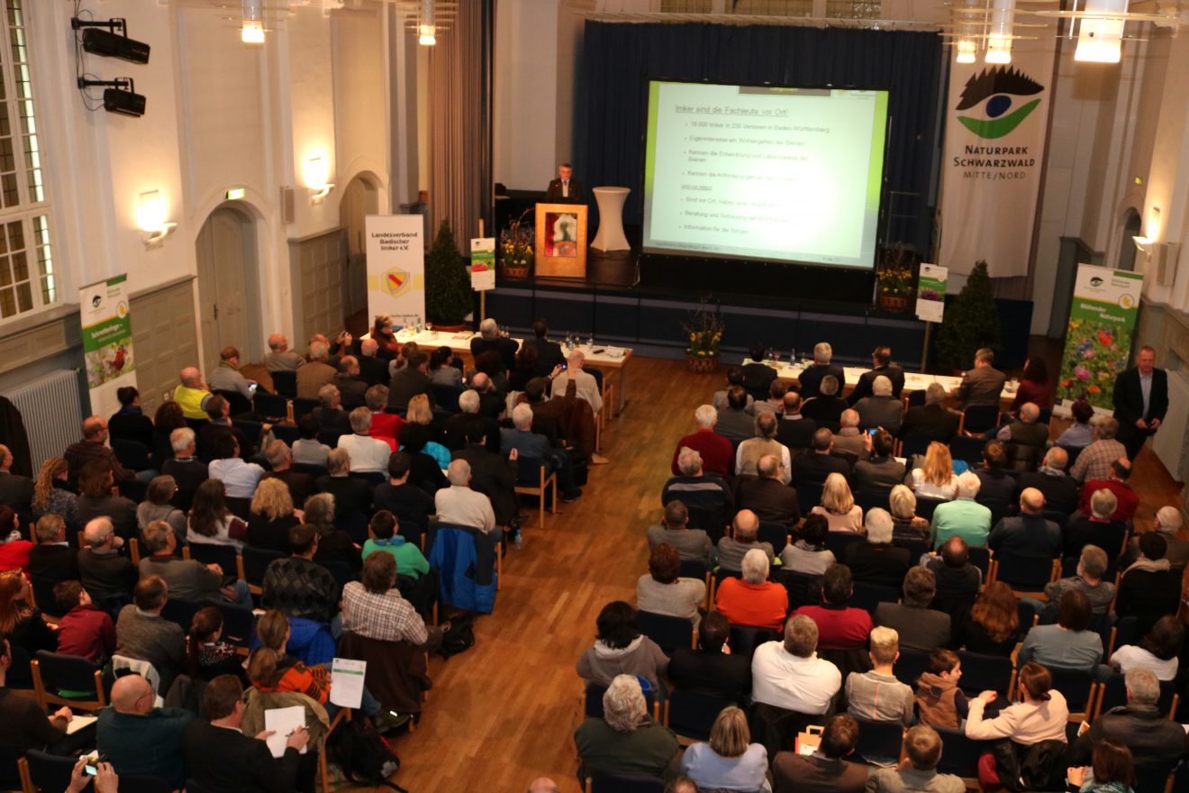Die Landesregierung hat nun aus ihrem „Sonderprogramm des Landes zur Stärkung der biologischen Vielfalt“ den sieben Naturparken im Ländle 370.000 Euro für das Projekt zur Verfügung gestellt. Landwirtschaftsminister Peter Hauk MdL überreichte am 16. Februar 2018 auf der Fachtagung „Forum Bienenweide“ in Gengenbach vor 160 Teilnehmern einen symbolischen Zuwendungsbescheid an Karl-Heinz Dunker, den Geschäftsführer des Naturparks Schwarzwald Mitte/Nord. Unser Naturpark hat die Federführung bei dem landesweiten Projekt übernommen. „Unser Biodiversitätsprogramm stellt die Insekten in den Mittelpunkt“, sagte der Minister.