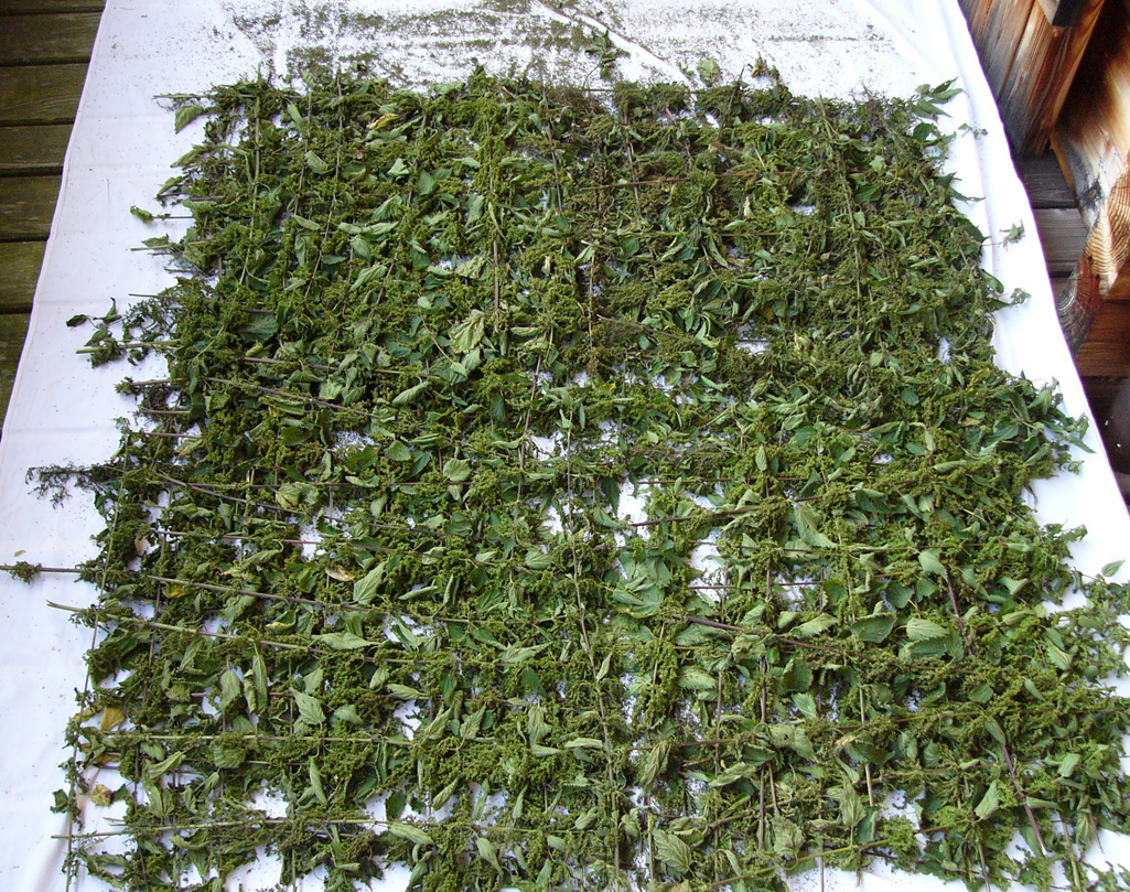 Zur Ernte verwendet ihr am besten dicke Wollhandschuhe oder gefütterte Gartenhandschuhe und schneidet mit einer Schere die weiblichen Brennnesseln mit den Fruchtständen komplett ab. Zuhause lasst ihr sie auf einem alten Leintuch ausgelegt über Nacht antrocknen, um dann die Früchte am Tag darauf, auch wieder mit Handschuhen ausgestattet, abzurebeln. Die Blätter und Stängel müsst ihr entfernen, übrig bleiben die Nussfrüchte. Einige Tage auf einem Backblech offen stehen gelassen, trocknen sie gut und können aufbewahrt werden.