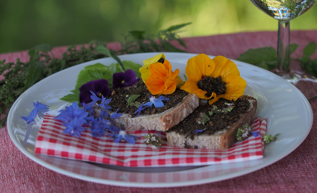 Auch eine Brennnesselbutter ist ganz schnell hergestellt. Dazu werden die gemörserten Früchte unter weiche Butter gerührt und diese mit Salz, Chili und einigen Spritzern Zitronensaft abgeschmeckt. Auch Variationen mit den Samen von Knoblauchsrauke und Giersch schmecken sehr gut!