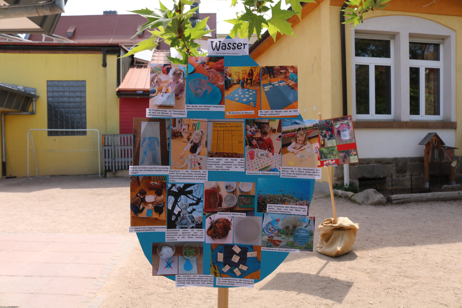 Auch beim Wasser-Projekt steht die Nachhaltigkeit im Fokus. Woher kommt das Wasser? Wofür wird es benötigt? Und vor allem: Wie kann jeder Wasser sparen? Mit dem angesammelten Wissen dürfen die Kinder dann experimentieren: Was schwimmt, was sinkt? Sie bauen Wasserfilter, stellen Eis her und kreieren Eisskulpturen.
