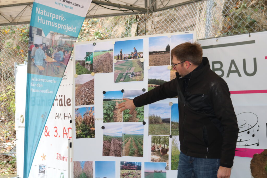 Humusaufbau auf den Feldern schützt das Klima, indem er der Atmosphäre klimaschädliches CO₂ entzieht. „Humus macht die Felder zudem resilienter für die immer häufiger auftretenden Trockenphasen“, sagt Naturpark-Projektmanager Paul Hofmann. Weiter erklärt Hofmann, der selbst als Landwirt einen Hof mitbewirtschaftet: „Humus speichert hervorragend Wasser und Nährstoffe. Das macht die Böden fruchtbarer und ertragreicher. Außerdem fördert Humus die Biodiversität.“