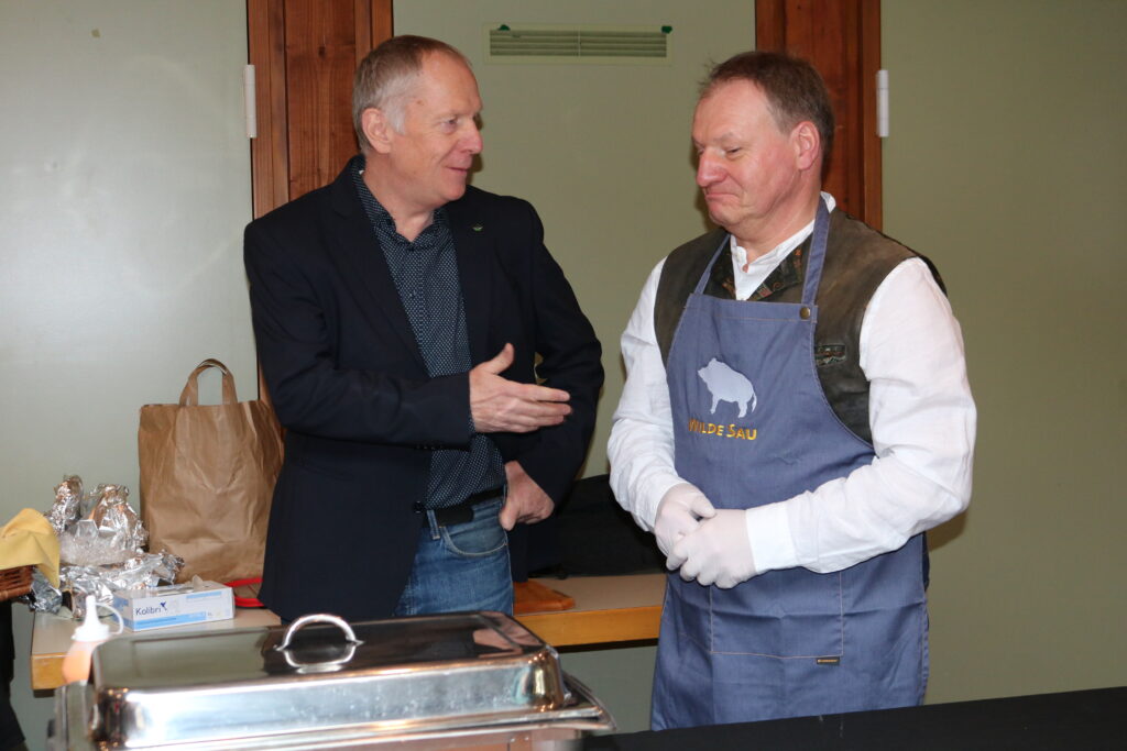 Nach den Fachvorträgen zu ausgewählten Naturpark-Klimaprojekten durften sich die Landtagsabgeordneten selbst an einer Aufgabe des neuen Klima-Actionbounds – einer digitalen Schnitzeljagd in der Natur für Familien – versuchen. Anschließend berichteten die Landwirte Sophie und Jonathan Kraul vom Unteren Berghof in Wildberg von ihren Erfahrungen zum Humusaufbau. Sie sind Partner-Betrieb beim Humusprojekt des Naturparks. Zum Abschluss gab „Wilde Sau“-Metzger Joachim Seeger aus Kuppenheim Einblick in das Naturpark-Projekt „Wilde Sau“ – einem Projekt zur Vermarktung von Wildschwein-Spezialitäten – inklusive einer Verkostung seiner Wildschwein-Kreationen.