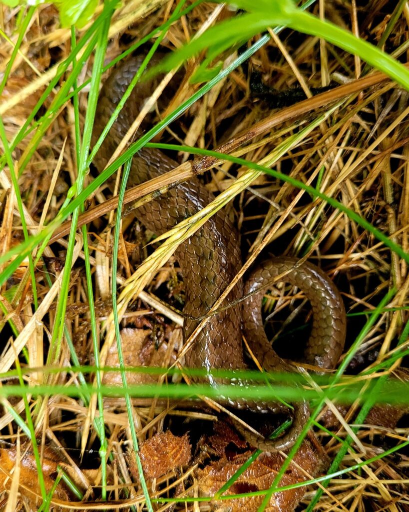 Für einige Kinder eine neue Erfahrung. Finden wir den wilden Majoran anhand seines Aussehens, des Geruchs und seines Geschmacks? Dieser erste Test wurde hervorragend bewältigt und blieb den Kindern als Pizzakraut von der Wiese in Erinnerung. Mit Hörkarten und Insektensuchkarten testeten wir unsere Ohren und Augen. Die Ohren funktionieren mit geschlossenen Augen einfach besser, war die Erkenntnis. Unsere Augen entdeckten viel Spannendes, von der Ringelnatter über eine frisch geschlüpfte Libelle bis zu unzähligen Schnecken- und Käfervarianten.