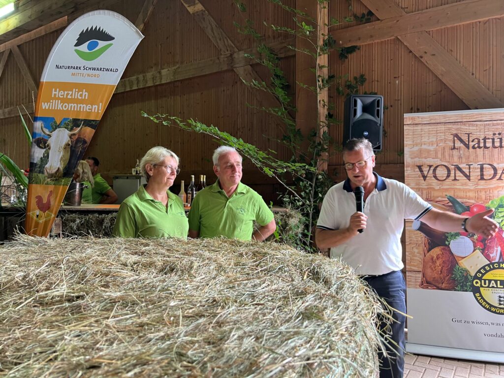 Den Naturpark-Brunch auf dem Biolandhof Reiser in Straubenhardt eröffnete Peter Hauk, Minister für Ernährung, Ländlichen Raum und Verbraucherschutz Baden-Württemberg. An die zahlreichen Gäste gewandt sagt Hauk: „Kaufen sie nach Möglichkeit regional ein und achten Sie darauf, wie die Tiere gehalten werden. So unterstützen Sie einen respektvollen Umgang mit Lebensmitteln, leisten einen Beitrag zum Klimaschutz und stärken die Landwirte in unserer Region. Denn unsere Kulturlandschaft ist nur so gut, weil unsere Landwirte sie bewirtschaften.“