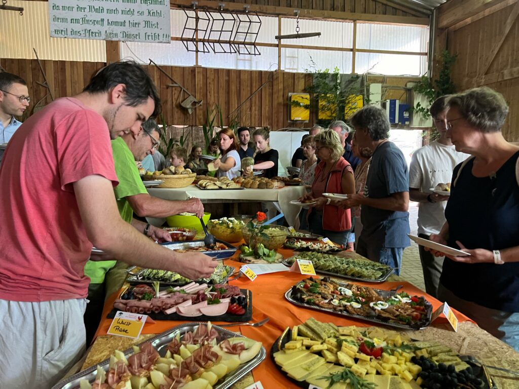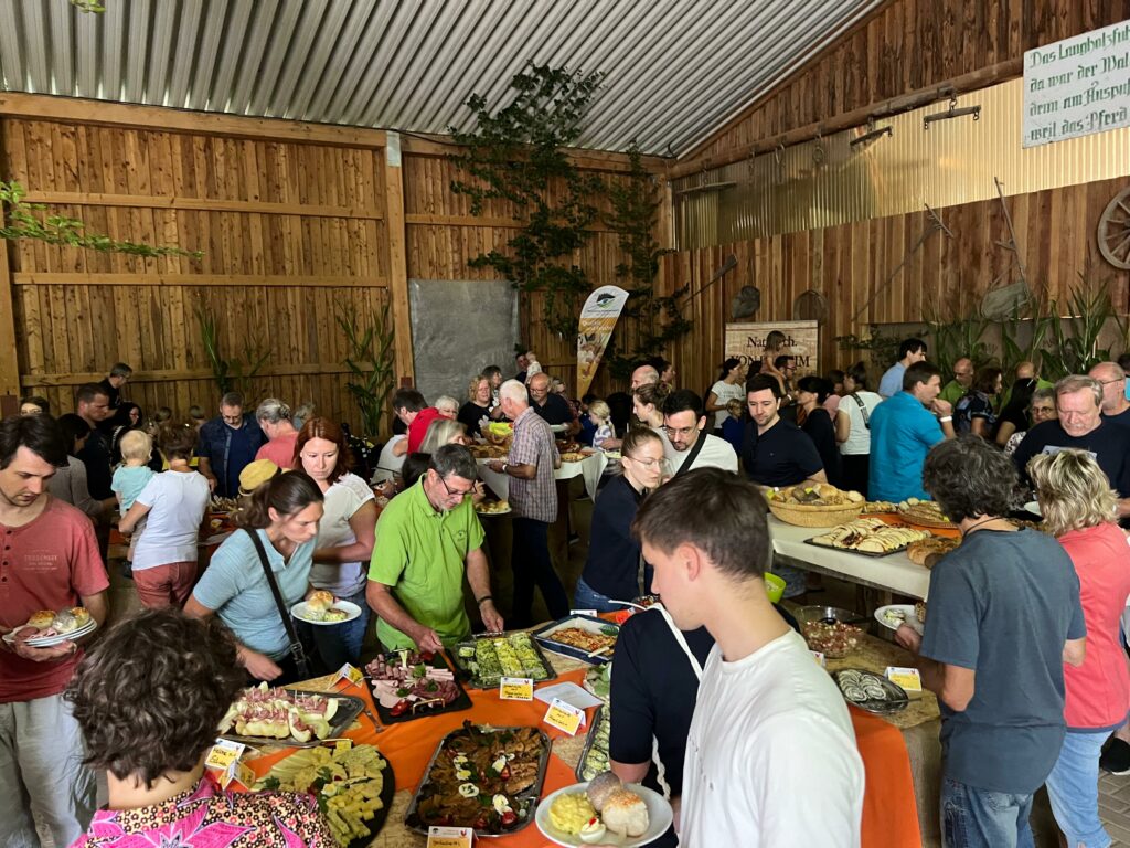 Der Naturpark-Brunch kommt sehr gut an bei den Menschen. Die teilnehmenden Höfe waren auch in diesem Jahr wieder ausgebucht. „Wir haben viele Stammgäste“, sagt Horst Reiser, Senior-Chef des Biolandhofs Reiser. „Aber es kommen jedes Jahr auch neue Gäste zum Brunch.“ So wie Elena Drollinger-Koziol. Sie ist zum ersten Mal mit ihrer Familie dabei und begeistert. „Es ist ein tolles Event und es wird viel geboten. Auch für die Kinder gibt es viel. Vorhin sind wir zusammen im Traktoranhänger gefahren“, berichtet sie.