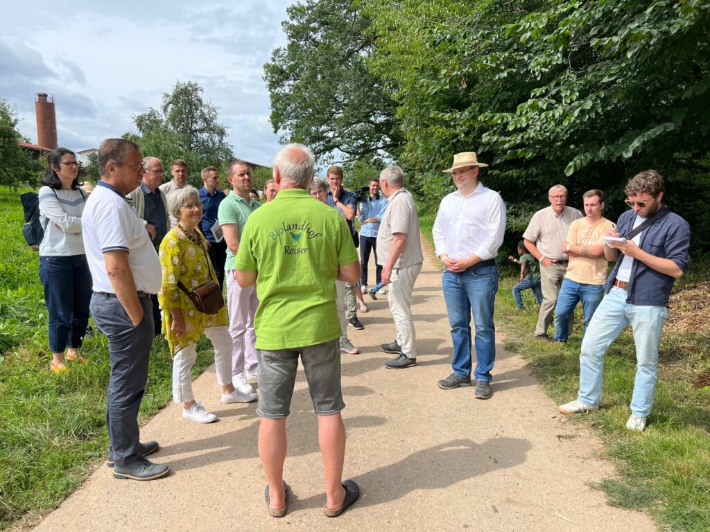 Eines ihrer neueren Projekte sieht die Familie Reiser darin, eine Wertschöpfungskette für die Vermarktung von Bruderhähnen in der Region zu etablieren – von der Haltung, über die Verarbeitung bis hin zur Vermarktung. Damit engagiert sie sich für das Tierwohl. Außerdem plant sie, auf einer Grünlandfläche von rund einem Hektar eine Agri-PV-Anlage anzulegen. Das Vorhaben zeigt, dass Energiewende und Landwirtschaft keine Gegensätze sind.