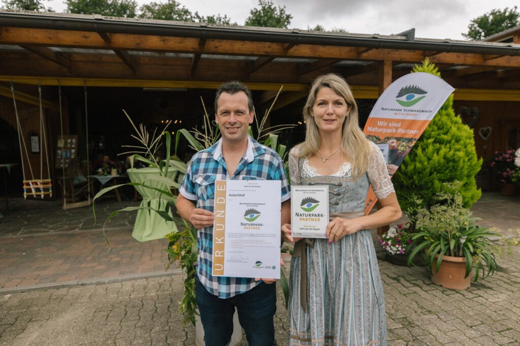Der Naturpark Schwarzwald Mitte/Nord hat den Aulachhof in Muggensturm (Landkreis Rastatt) im Rahmen des Naturpark-Brunchs auf dem Bauernhof am Sonntag (3. August) als „Naturpark-Partner“ ausgezeichnet. 18 Naturpark-Partner gehören mittlerweile dem Netzwerk an. Im Landkreis Rastatt sind es sieben. Das Prädikat Naturpark-Partner steht für gelebte Regionalität und eine nachhaltige Wirtschaftsweise.