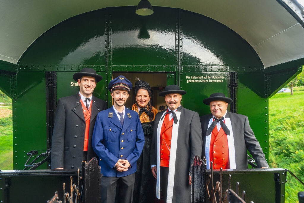 Matthias Rohrer von der Trachten- und Volkstanzgruppe, Yannick Angerer vom Achertäler Eisenbahnverein und Schwarzwald-Guide Melanie Steinlein von der Tourist-Info Ottenhöfen haben eine eindrucksvolle Fotoausstellung zusammengestellt. Sie nimmt die Besucher mit auf eine Zeitreise durch 125 Jahre Eisenbahngeschichte. Sie zeigt das Achertal durch die Brille der Pioniere, die 1898 mit viel Mut und Weitsicht dieses bis heute wichtige Infrastrukturprojekt verwirklichten. Außerdem informiert der Eisenbahnverein Achertal über seine Arbeit und das Vereinsleben. Zum Eintauchen in die Eisenbahngeschichte des Achertals ist auch die Jubiläumsbroschüre 125 Jahre Achertalbahn erhältlich.