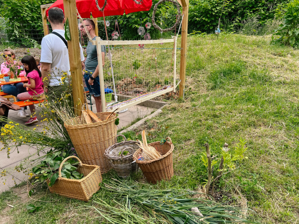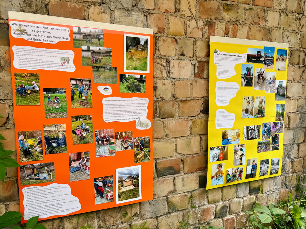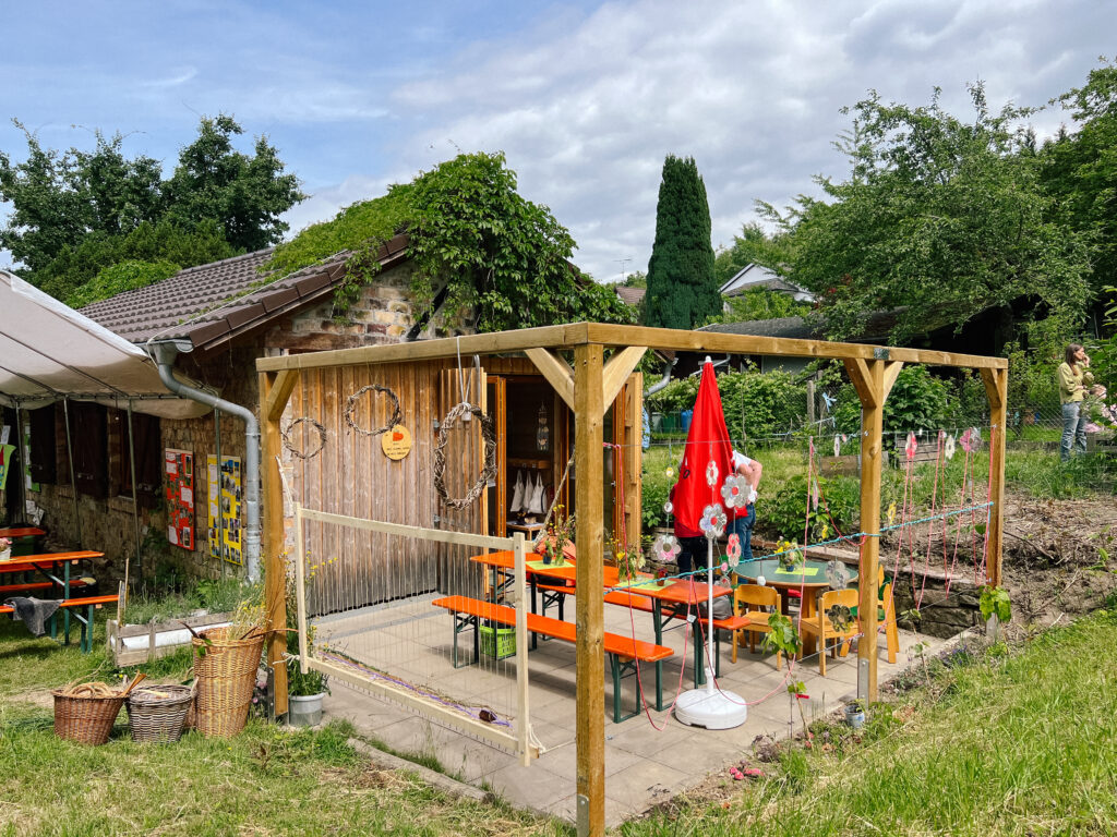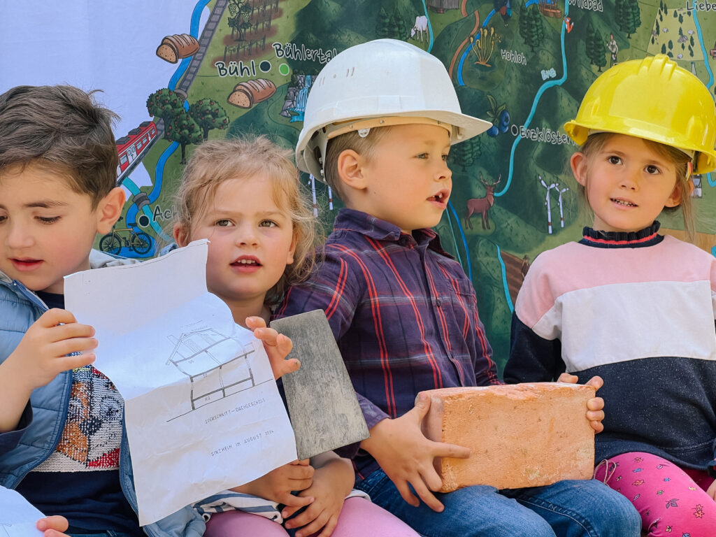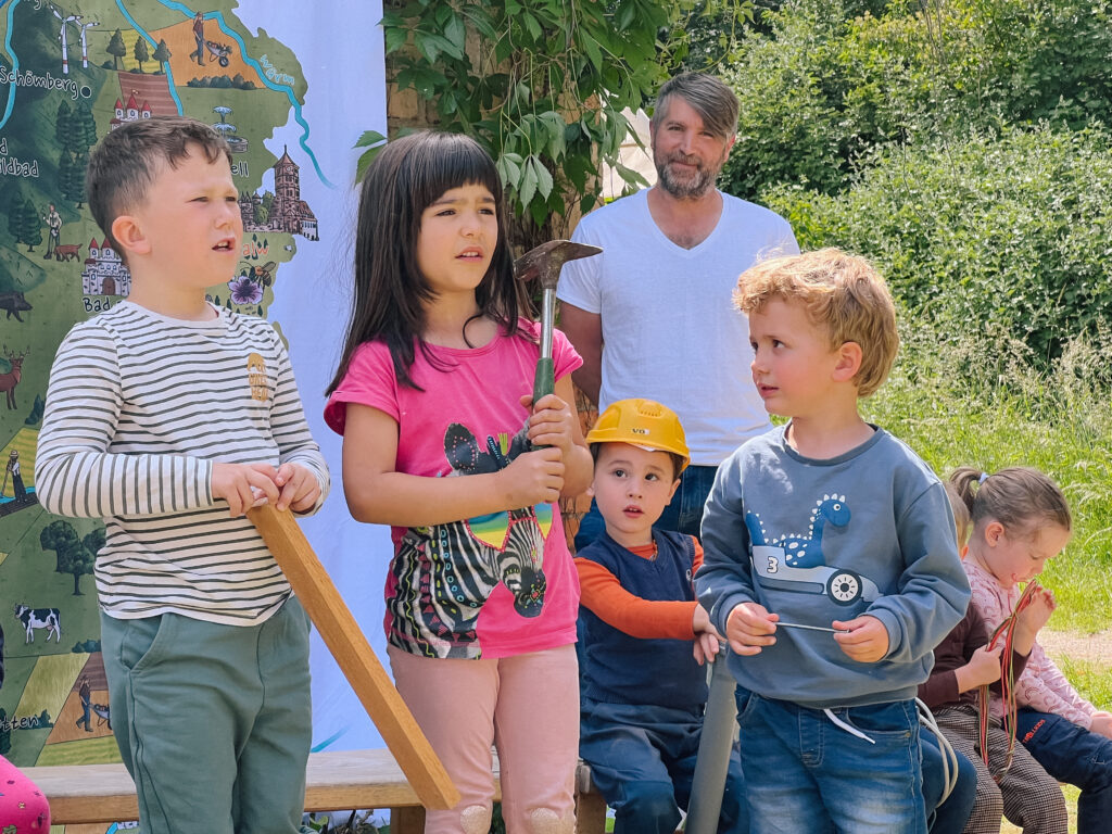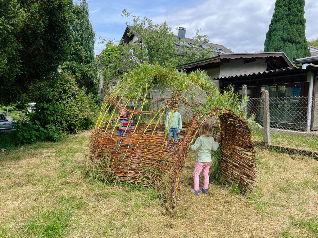 Bei ihrem aktuellen Naturpark-Projekt gestalteten die Kinder gemeinsam mit Erziehenden und Eltern den Garten des Kindergartens naturnah um. Sie pflanzten Bäume und Beerensträucher, bauten ein Weidentippi und ein Spalier, forschten mit allen Sinnen und planten neue Elemente.