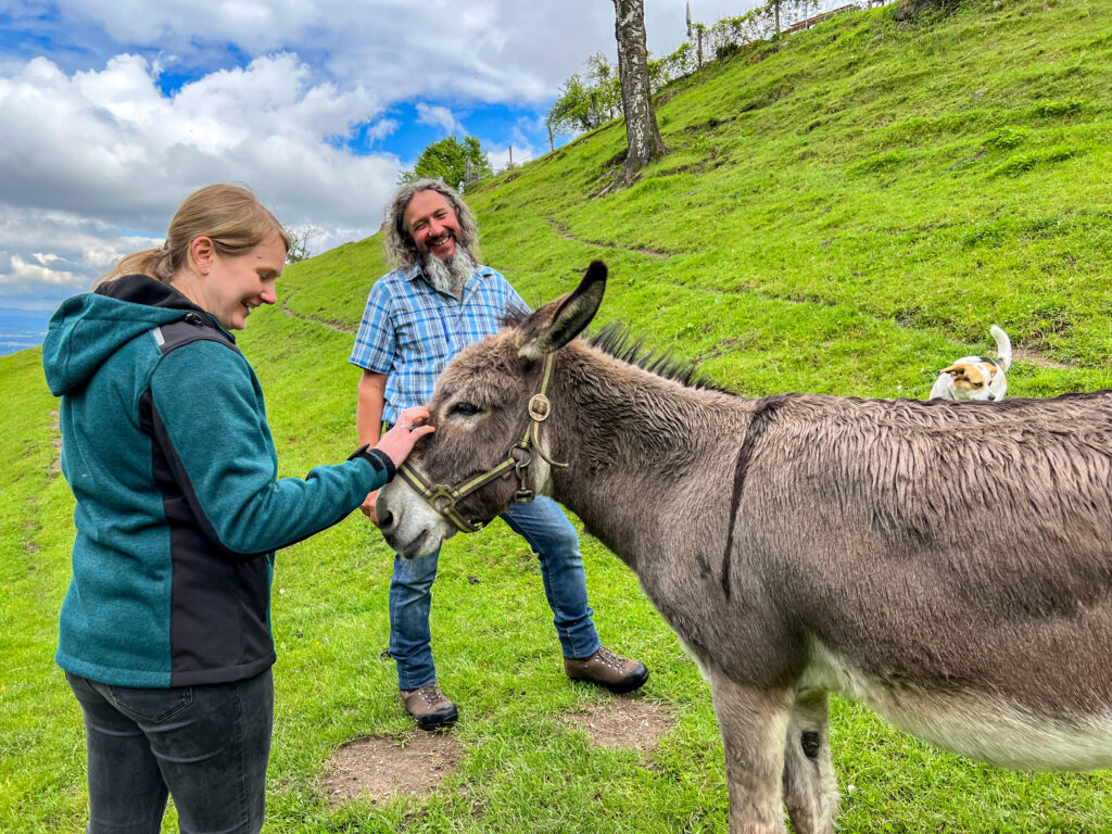 Bei der Übergabe der Partnerplakette an Stefan und Mareike Doll auf ihrem Hof auf dem Hagenberg in Sasbachwalden sagt die Naturpark-Projektmanagerin Janina Hutt: „Ihr bewirtschaftet den Hof und Dolle Frieders Burewirtschaft mit viel Leidenschaft. Das merkt man, wenn man euren Hof besucht, sich mit euch bei einem Vesperbrett in der Strauße unterhält oder eure selbst hergestellten Produkte genießt.“ Sie ergänzt: „Eure Gäste können den Naturpark in seiner kulturlandschaftlichen Vielfalt sehen und schmecken. Auf einer Wanderung bei euch einkehren, ist ein tolles Erlebnis.“