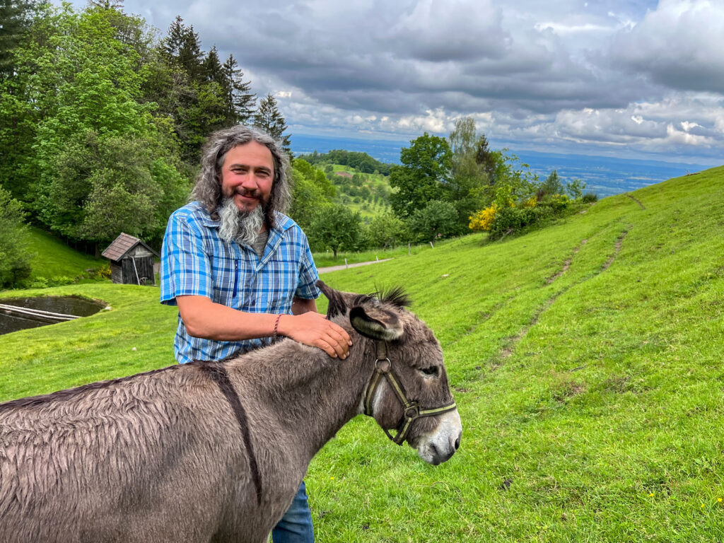 Stefan und Mareike Doll bewirtschaften eine Fläche von 13 Hektar. Diese umfasst Streuobstwiesen mit Kirschen und Äpfeln, Weiden und Wald sowie einen Forellen-Teich. Ihre Mutterkühe, Schafe und Esel sorgen durch Abgrasen auf natürliche Weise dafür, dass die Wiesen in der steilen Vorbergzone des Schwarzwalds offenbleiben. Ihren Hof betreiben die Dolls nahezu autark: Das Futter für die Tiere bauen sie selbst an. Die Heizung betreiben sie mit Hackschnitzeln aus dem Holz, das sie aus ihrem Waldstück gewinnen. Auf den bewirtschafteten Flächen verwenden sie natürlichen Dünger aus dem Mist ihrer Tiere. Die Dolls verzichten auch darauf, die Bäume auf ihren Streuobstwiesen mit chemischen Mitteln zu spritzen.