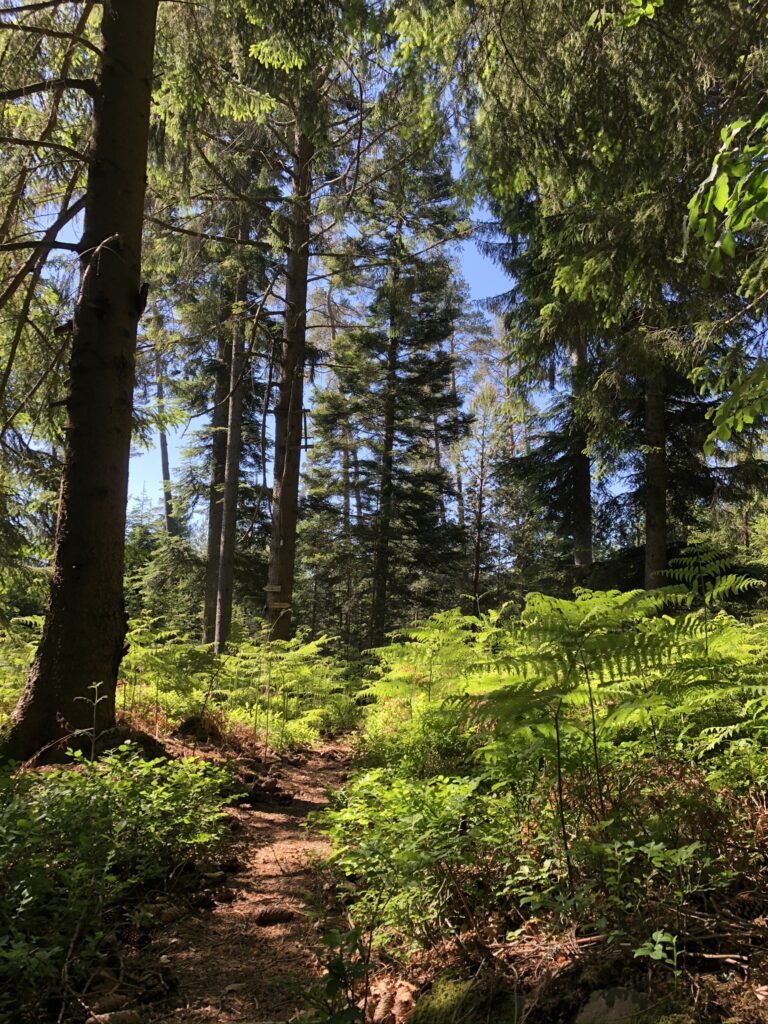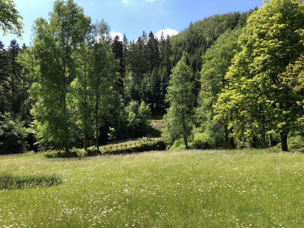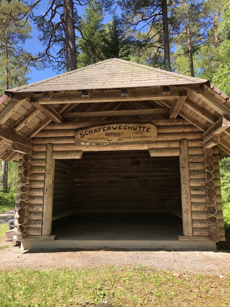 Weiter geht es auf geschotterten Waldwegen Richtung Grünhütte. Sofern sie nach dem Shutdown wieder geöffnet ist, solltet ihr dort eine Rast einlegen und den berühmten Blaubeerpfannkuchen genießen. Nach einer gemütlichen Pause geht es auf einem anderen Weg zurück zum Lautenhof. Oberhalb der Grünhütte nehmt ihr den Waldweg Richtung Schäferweghütte/Lautenhof.