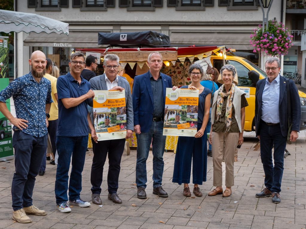 Die Bio-Musterregion Mittelbaden+ veranstaltet zum Auftakt der Bio-Woche am 29. September einen Bio-Markt auf dem Marktplatz in Bühl (Landkreis Rastatt). Der Markt beginnt um 15 Uhr und endet um 20 Uhr. Die offiziellen Eröffnungsreden zur Bio-Woche werden um 17 Uhr gehalten. Auf dem Markt findet ihr ausschließlich biologisch angebaute und hergestellte Produkte an. Die Bio-Speisen und Bio-Getränke stammen aus der Region. Mit dabei ist auch Chefkoch Ronny Marzin vom Restaurant Landglück aus Nesselried mit Kürbis-Spezialitäten. Neben dem Essensangebot gibt es auch kleine Verkostungen.