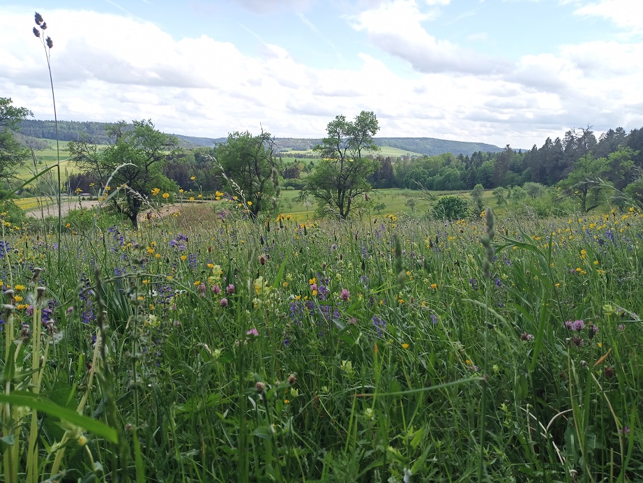 Wir nähern uns den Begriffen „Landschaftszerschneidung, Strukturvielfalt und Biotopverbund“ auf praktische Weise. Wir spazieren innerhalb kürzester Zeit dabei durch Streuobstwiesen, Feldflur, Wald, Wiesen und Hecken und genießen den Weitblick in den Schwarzwald sowie in das Heckengäu.