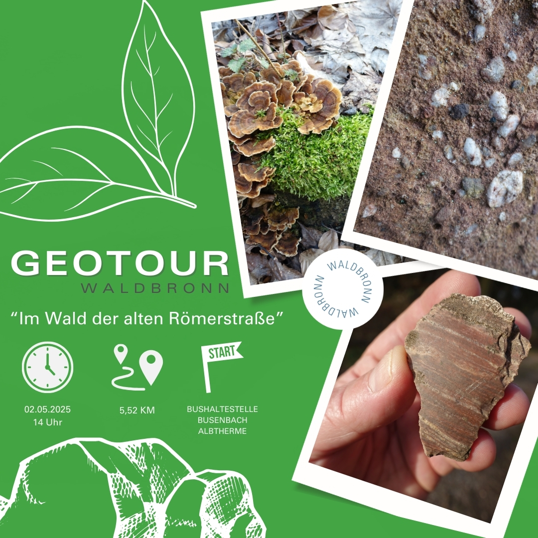 Diese GeoTour macht mit ihren Erkundungsaufgaben und Forschungsfragen das Thema „Steine und Geologie“ zum spannenden Outdoor-Erlebnis für die ganze Familie. Hauptthemen: Geröllsandstein, Plattensandstein, Löß, Historische Steinbrüche, Gesteine und Landschaft, Römer und Steine. Weitere Themen: Wasser, Quellen, Brunnen, Thermalwasser, „Geo-Lebewesen“.