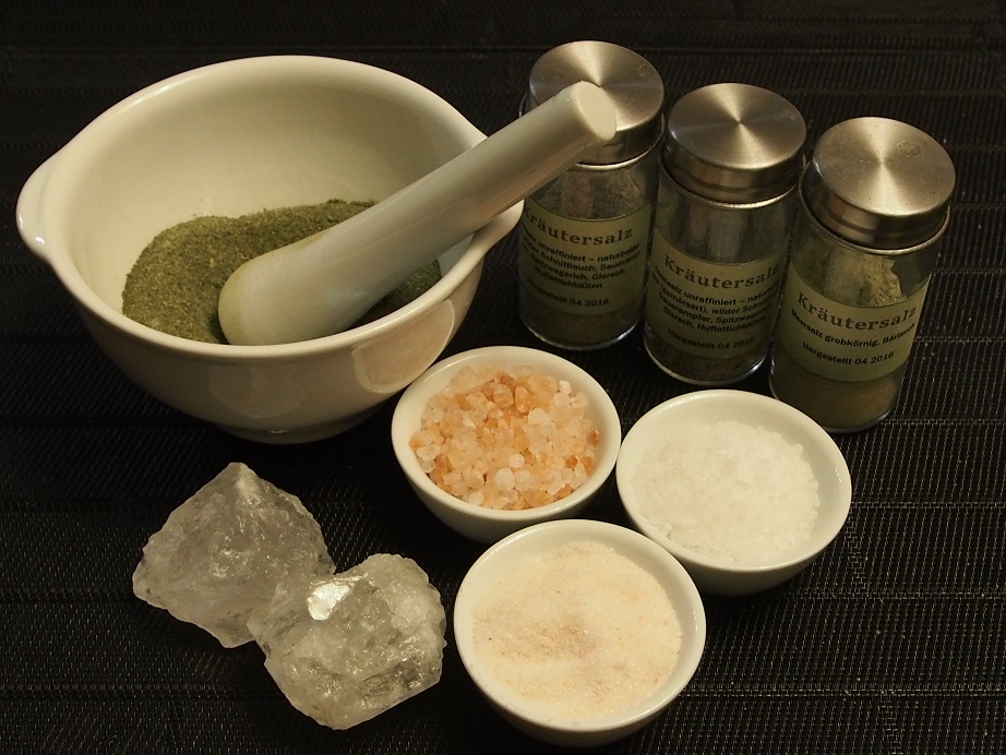 Nach einem kurzen gemeinsamen Spaziergang stellen wir aus frischen und getrockneten Kräuterzusammenstellungen individuelle Kräutersalze her. Die Teilnehmer können mit unterschiedlichen Salzen experimentieren.