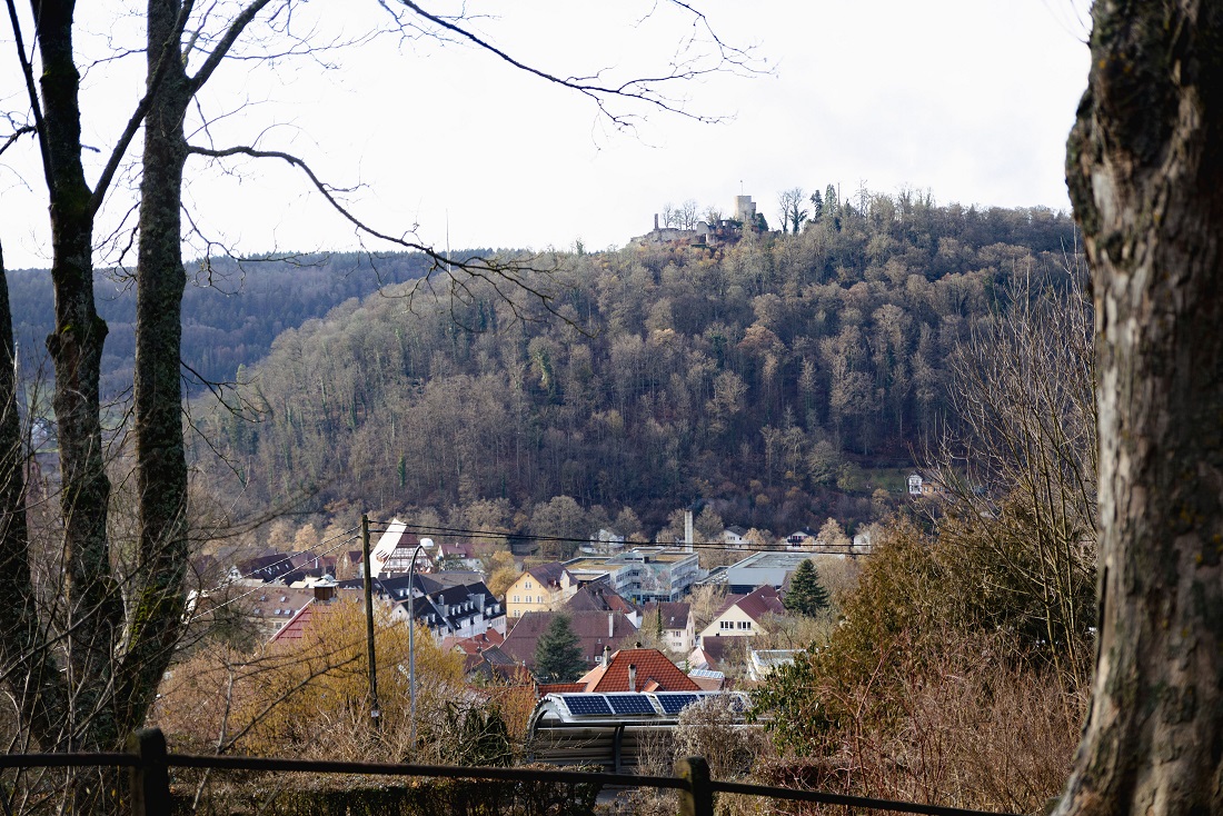 Nach einem unterhaltsamen Gartenrundgang erkunden wir auf abwechslungsreichen Wegen die Nagolder Kultur- und Stadtlandschaft. Bei unserer urigen Hütte am Waldrand genießen wir das wunderschöne Stadtpanorama mit dem malerischen Schlossberg.