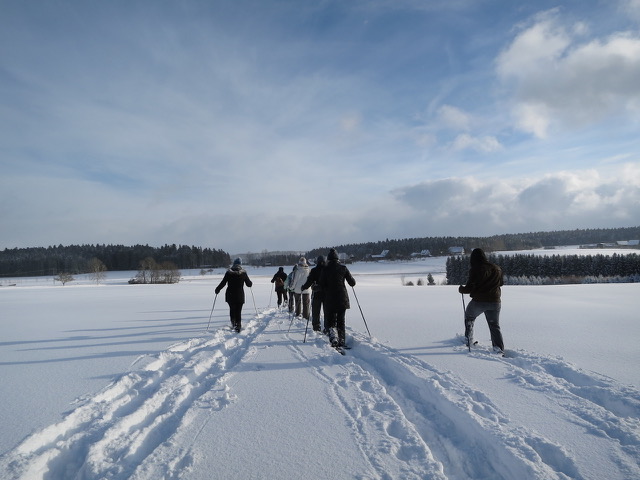 Wir starten am Bärenkreuz zu einer Schneeschuhwanderung Richtung 24 Höfe und genießen die Winterlandschaft mit kurzen Geschichten zur Geschichte des Schwarzwaldes hier in der näheren Umgebung.