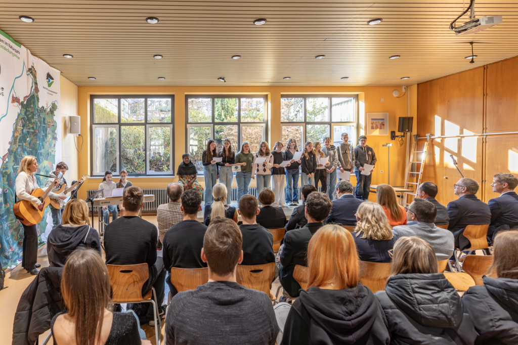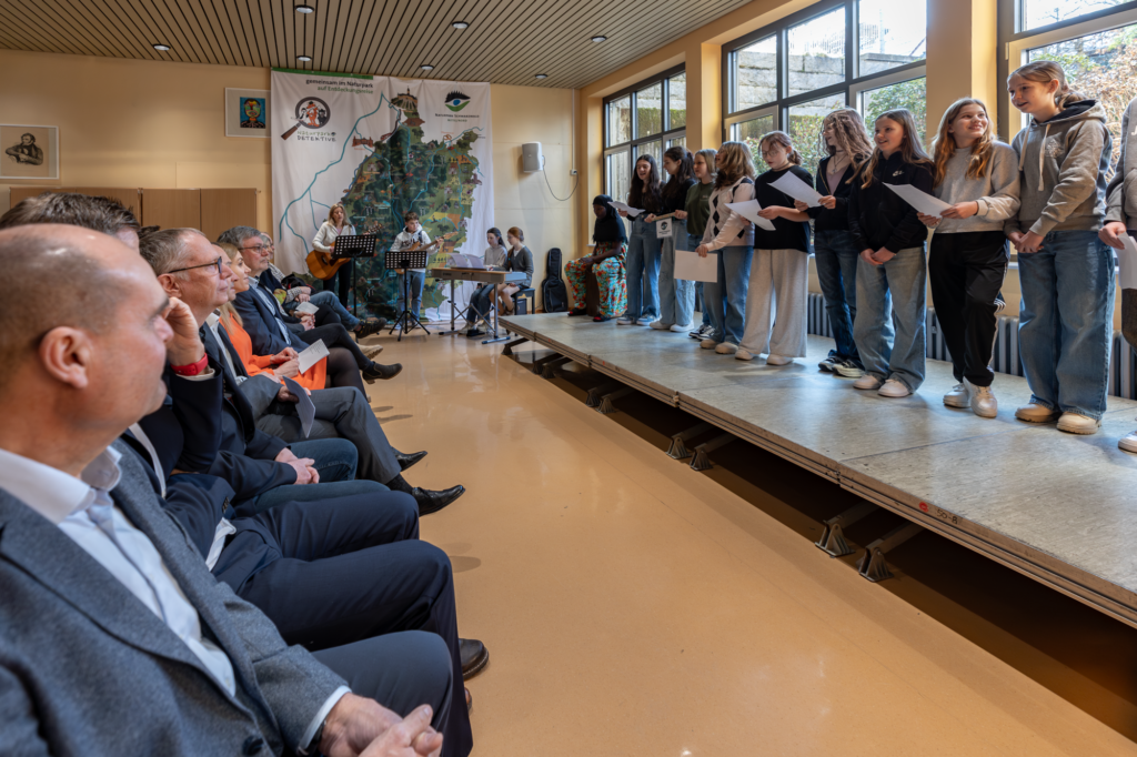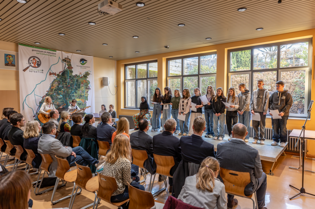 Für Schulleiter Paul Meer ist die Auszeichnung als Naturpark-Schule nicht nur Grund zu feiern, sondern auch ein Ausdruck der Verantwortung für die Zukunft der Schülerinnen und Schüler uns unserer wunderschönen Heimat. „Die Entscheidung diesen Schritt zu gehen, war geprägt von dem Wunsch unseren Schülerinnen und Schülern mehr als nur theoretisches Wissen zu vermitteln – wir möchten Ihnen die Einzigartigkeit unserer Natur erlebbar machen“ sagt Meer zu Beginn der Auszeichnungsfeier. „Die Auszeichnung als Naturpark-Schule ist nicht das Ende eines Weges, sondern der Beginn eines neuen Kapitels, eine Verpflichtung unsere Bildung für eine nachhaltige Entwicklung konsequent fortzuführen“ so Schulleiter Meer weiter.
