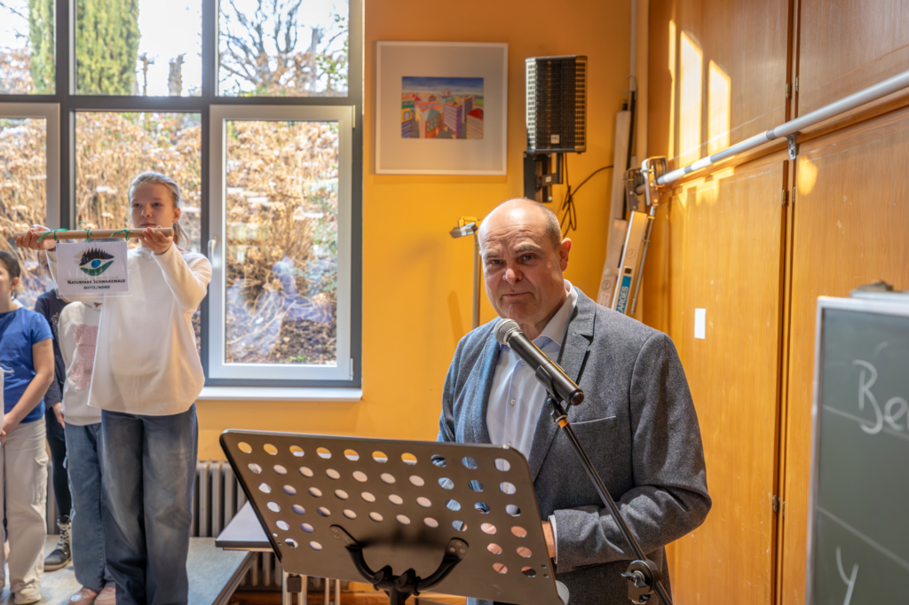 Auch der Bürgermeister der Gemeinde Bühlertal, Urs Kramer, freut sich über die Zertifizierung durch den Naturpark Schwarzwald Mitte/Nord. „Dieser besondere Tag heute markiert für mich und für uns als Gemeinde einen bedeutenden Meilenstein – mit der Auszeichnung als Naturpark-Schule zeigt die Franziska-Höll-Realschule eindrucksvoll, wie viel Engagement und Leidenschaft sie in die Vermittlung von Wissen über unsere Natur, unsere Umwelt und den Schutz unserer Ressourcen steckt“ so Kramer.