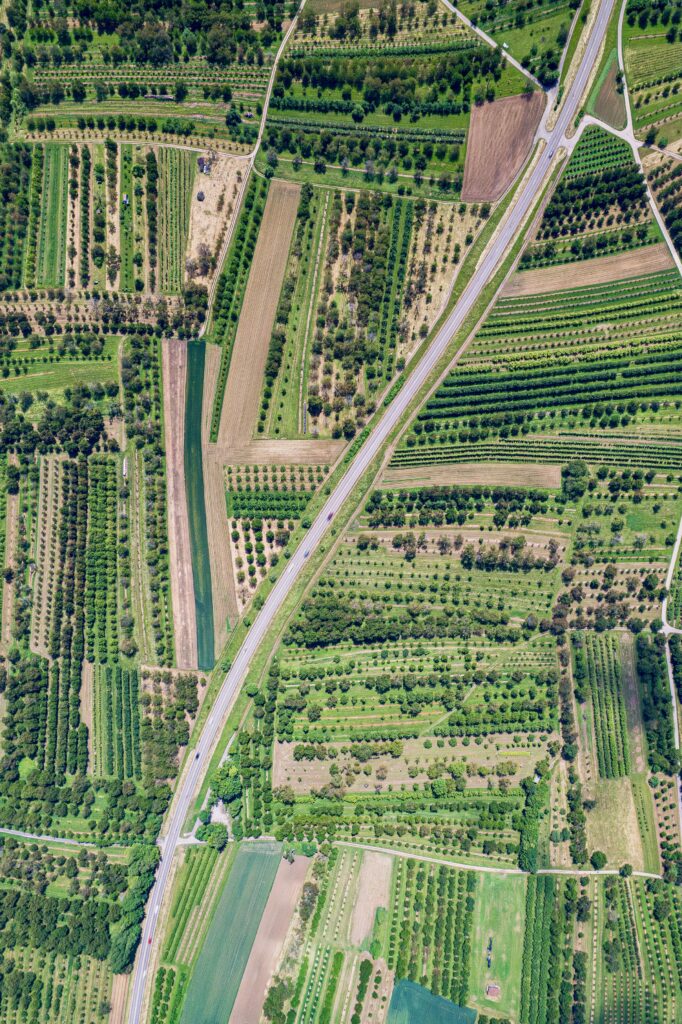 So sehen die Agroforstsysteme auf dem Hof Sonnenwald in Seewald von oben aus. Foto: Olef Koch/Universität Hohenheim
