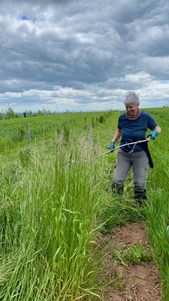 Rund 20 Freiwillige aus ganz Deutschland haben vom 26. bis zum 30. Mai im Rahmen des Bergwaldprojekts auf drei Agroforst-Betrieben des Naturparks Schwarzwald Mitte/Nord bei Pflegeeinsätzen mitgeholfen. Es ist der erste Einsatz des deutschlandweit aktiven Bergwaldprojekt-Vereins in Kooperation mit dem Naturpark. Gearbeitet wurde auf Flächen der SoLaVie e. V. in Offenburg, der Lorenz.Farm in Achern (Ortenaukreis) und dem Hof Sonnenwald in Seewald (Landkreis Freudenstadt). Dabei wurden Agroforstflächen gepflegt (Mahd, Hacken und Mulchen, Rückschnitt) und Lebensräume angelegt (Ansitzstangen, Wildbienenhabitat, Mauswieselhabitate, etc.). Bei der Aktionswoche ging es auch darum, die Naturpark-Agroforstbetriebe kennenzulernen und einen Beitrag zum Naturschutz zu leisten.