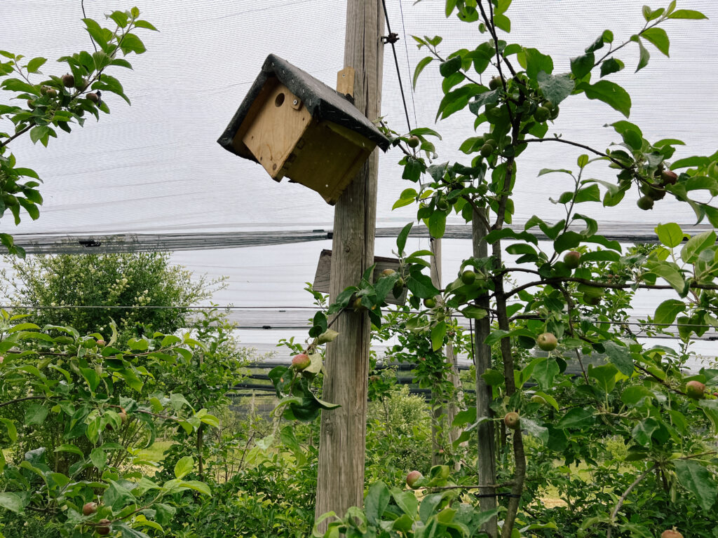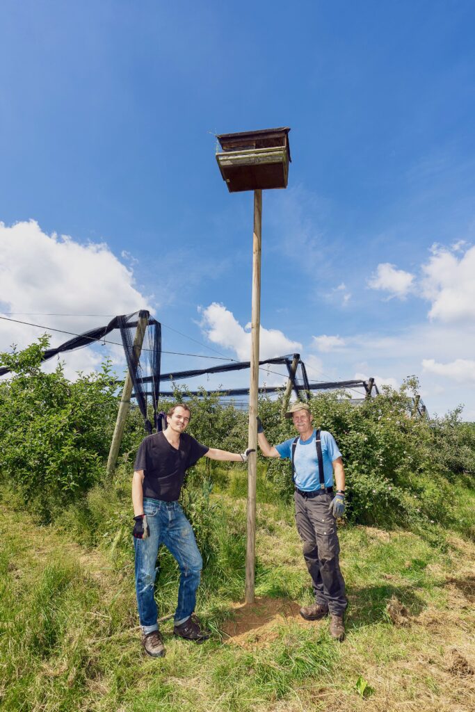 „All die Dinge aus eigener Kraft zu leisten, ist unmöglich. Es ist einfach toll, dass der Naturpark die Aktion mit dem Bergwaldprojekt initiiert hat. Die Unterstützung so vieler Freiwilliger ist ein Traum!“, sagt Johannes Lorenz während er von einer Arbeitsgruppe über den Hof zur nächsten bei den Apfelbäumen läuft. Dort bringt Jule Petzold gerade ein Vogelhäuschen an. Sie ist zum zweiten Mal bei einem Einsatz des Bergwaldprojekts dabei. „Ich möchte in meiner Freizeit etwas Sinnvolles und Sinnstiftendes machen. Mit meinem Engagement möchte ich der Natur etwas zurückgeben, aktiv das Klima schützen und mich für Biodiversität einsetzen. Mit den Arbeiten auf den Naturpark-Agroforstbetrieben kann ich genau das umsetzen“, berichtet die junge Frau aus Würzburg.