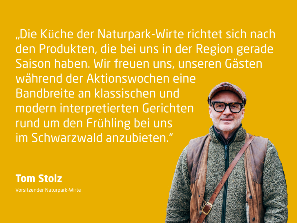 „Die Küche der Naturpark-Wirte richtet sich nach den Produkten, die bei uns in der Region gerade Saison haben“, beschreibt der Vorsitzende der Naturpark-Wirte, Tom Stolz. „Wir freuen uns, unseren Gästen während der Aktionswochen eine Bandbreite an klassischen und modern interpretierten Gerichten rund um den Frühling bei uns im Schwarzwald anzubieten.“ Zu den Naturpark-Gerichten empfiehlt die Waldulmer Winzergenossenschaft als Naturpark-Partner verschiedene Weine – darunter die Waldulmer Frühlingsschorle mit einem Waldulmer Spätburgunder Rosé Qualitätswein trocken.
