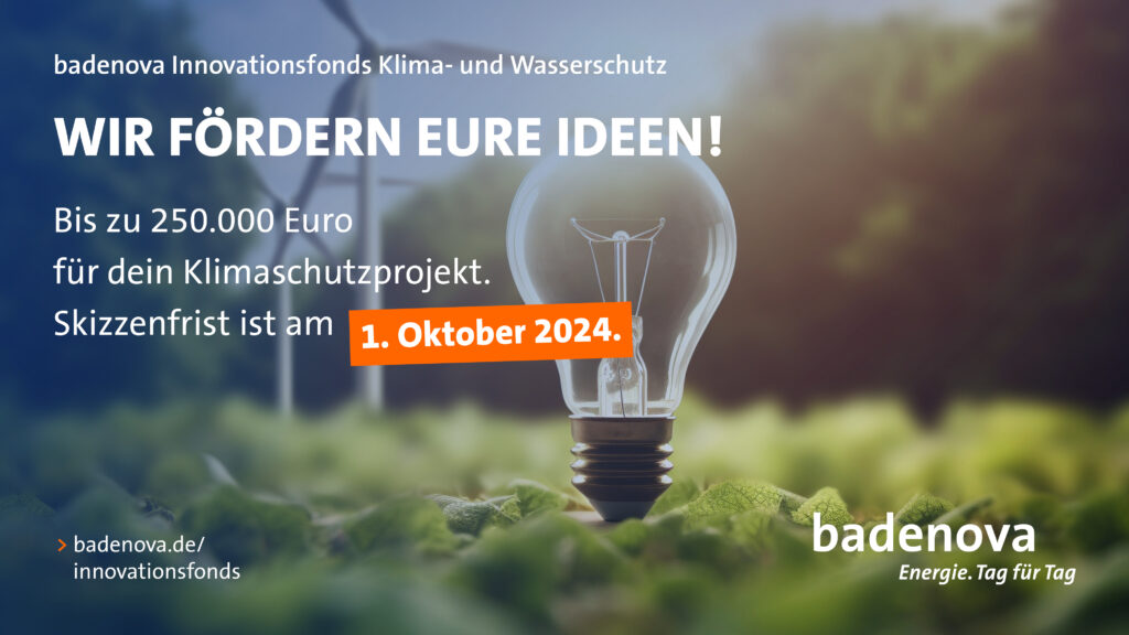 Habt ihr eine innovative Idee, die zur nachhaltigen Entwicklung unserer Region beiträgt? Nutzt die Chance und reicht eure Projektskizze bis zum 1. Oktober ein – lasst uns gemeinsam die Zukunft gestalten. Weitere Informationen findet ihr auf der Webseite von badenova.