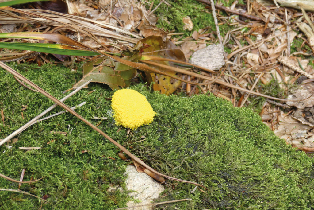 Gelbe Hexenbutter, auch Gelbe Lohblütte genannt (Fuligo septica).