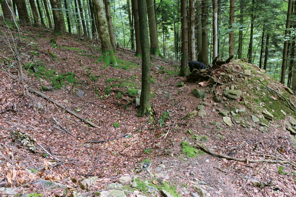 Solche Gruben oder Pingen deuten auf bergbauliche Aktivitäten hin.