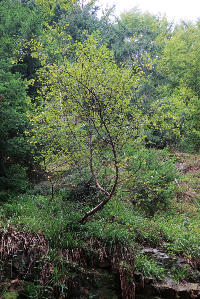 Im Spätsommer oder Herbst zeigen sich in dem quellig-feuchten Gelände auch Pilze wie der giftige Fliegenpilz, die saure Böden anzeigen. Das ist kein Wunder, da die meist sauren Ausgangsgesteine und hohe Niederschlagsmengen die Böden hier sauer werden lassen. Die geheimnisvolle Gelbe Hexenbutter wächst zwar nicht nur auf sauren Böden, besiedelt aber gerne deren streureiche Auflage. Die Wissenschaft ist sich uneins, ob Pilze nun Pflanzen, Tiere oder eine dritte Art sind. Jedenfalls ähnelt dieser Pilz zu Beginn eines Lebens einer Amöbe, die sich mit Scheinfüßchen sogar fortbewegen kann!