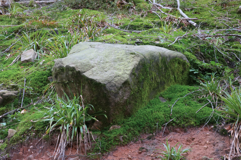 Bewachsene Steinblöcke haben sich hier versammelt.