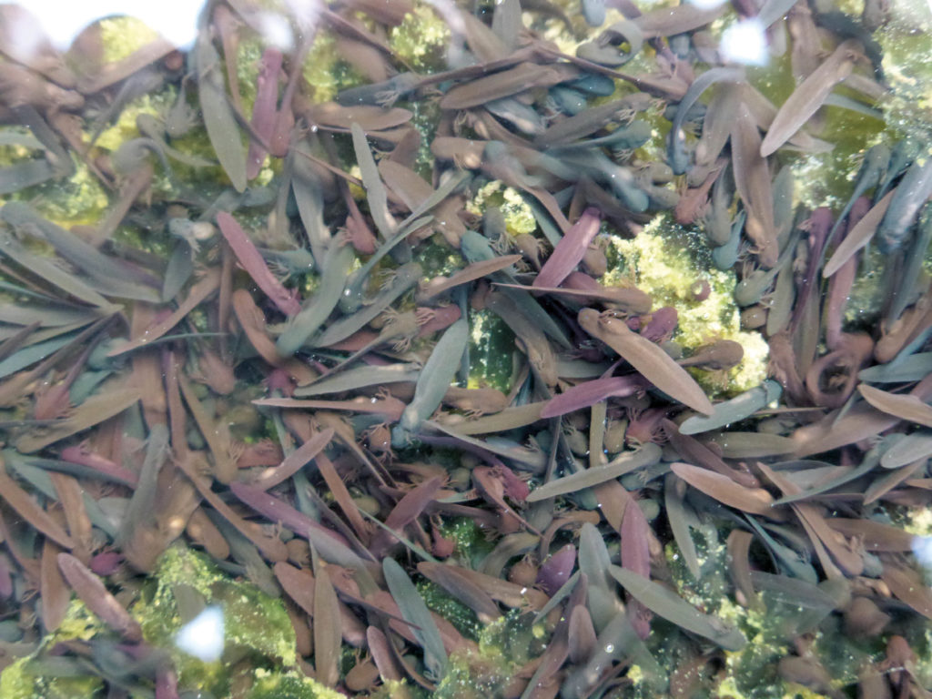Gut getarnte Kaulquappen des Grasfroschs