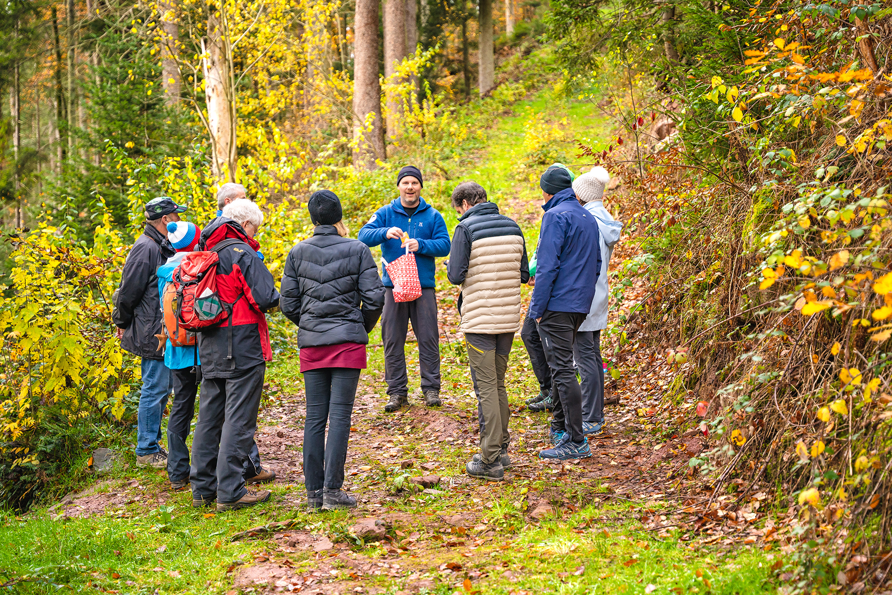 Während des gemächlichen Rückwegs durch einen wunderbar bunten Herbstwald, durch den dann sogar