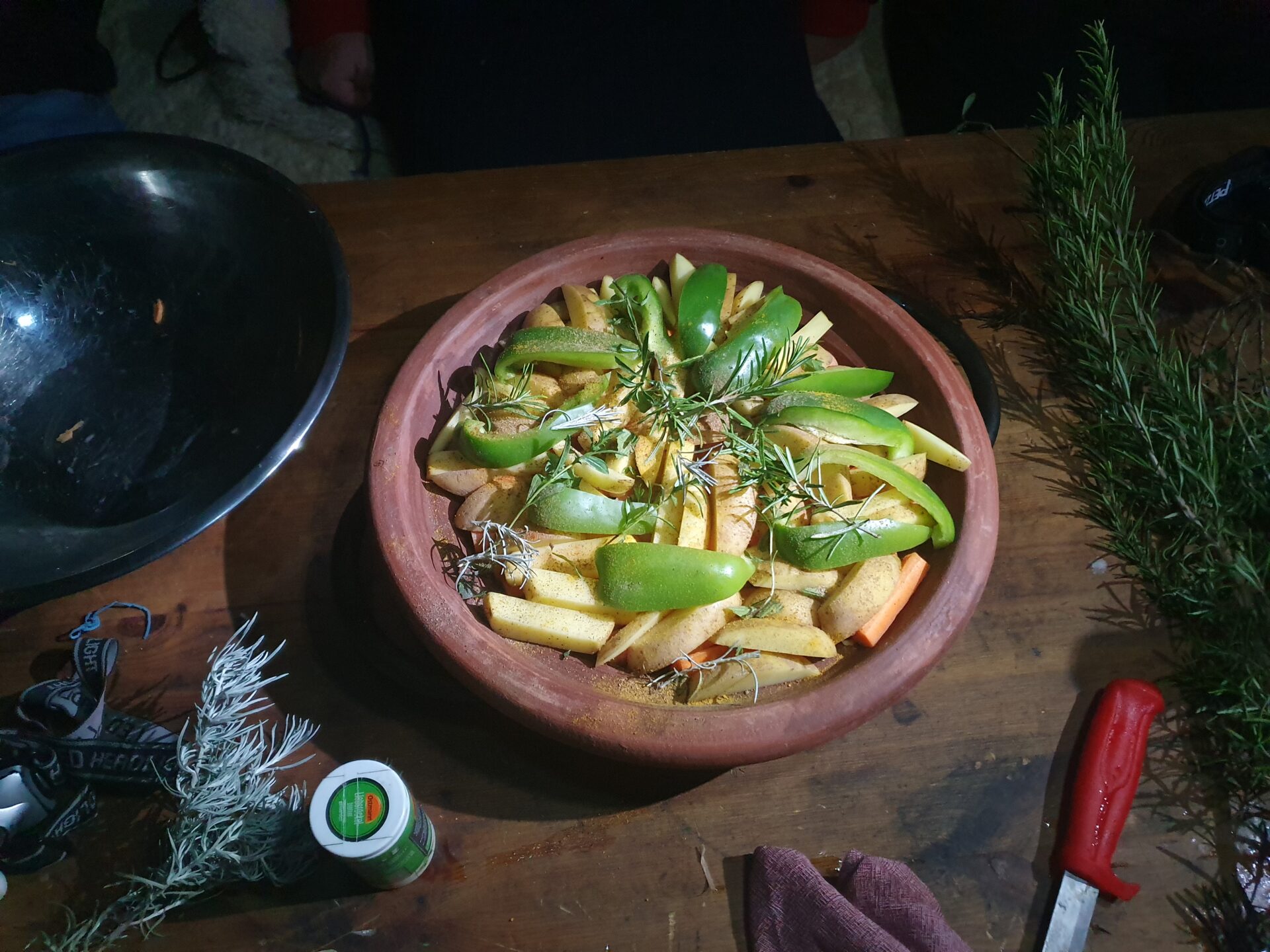 Kulinarisch ist einiges los am Trekking-Wochenende. Hier Gemüse für die Tajine, auf dem Holzofen gegart. -
