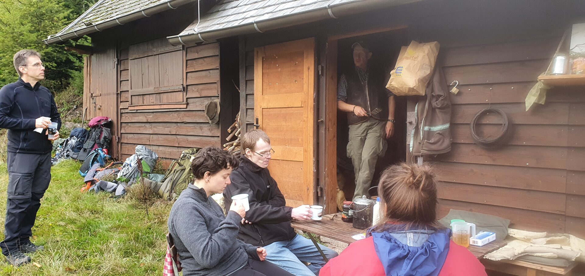 Nach der ersten Nacht im Zelt Aufbruch an der Forsthütte. -