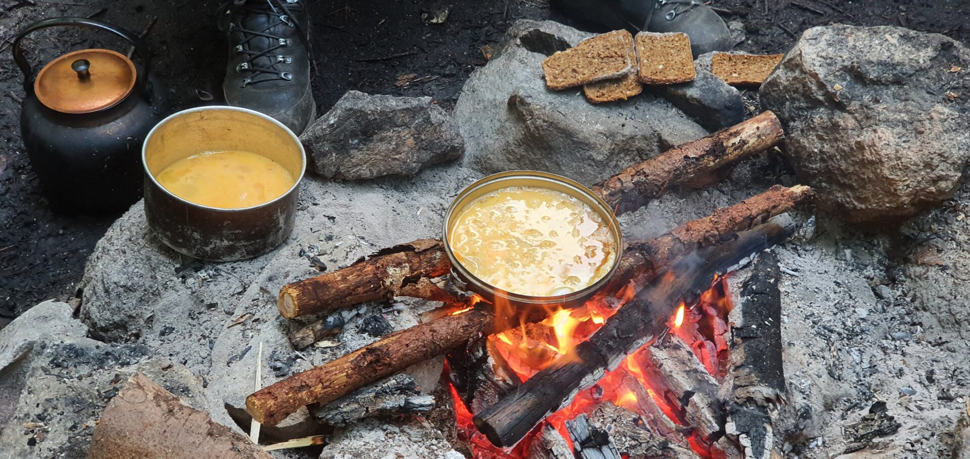 Rührei auf dem offenen Feuer – funktioniert wunderbar! -