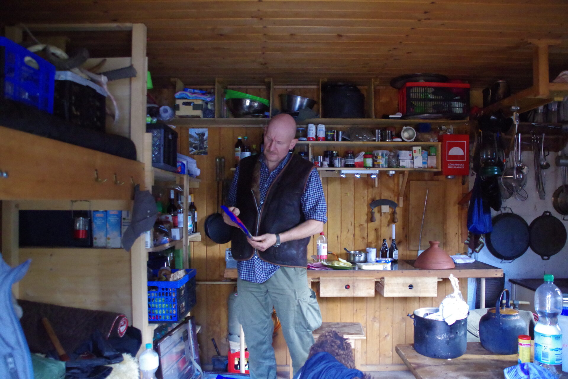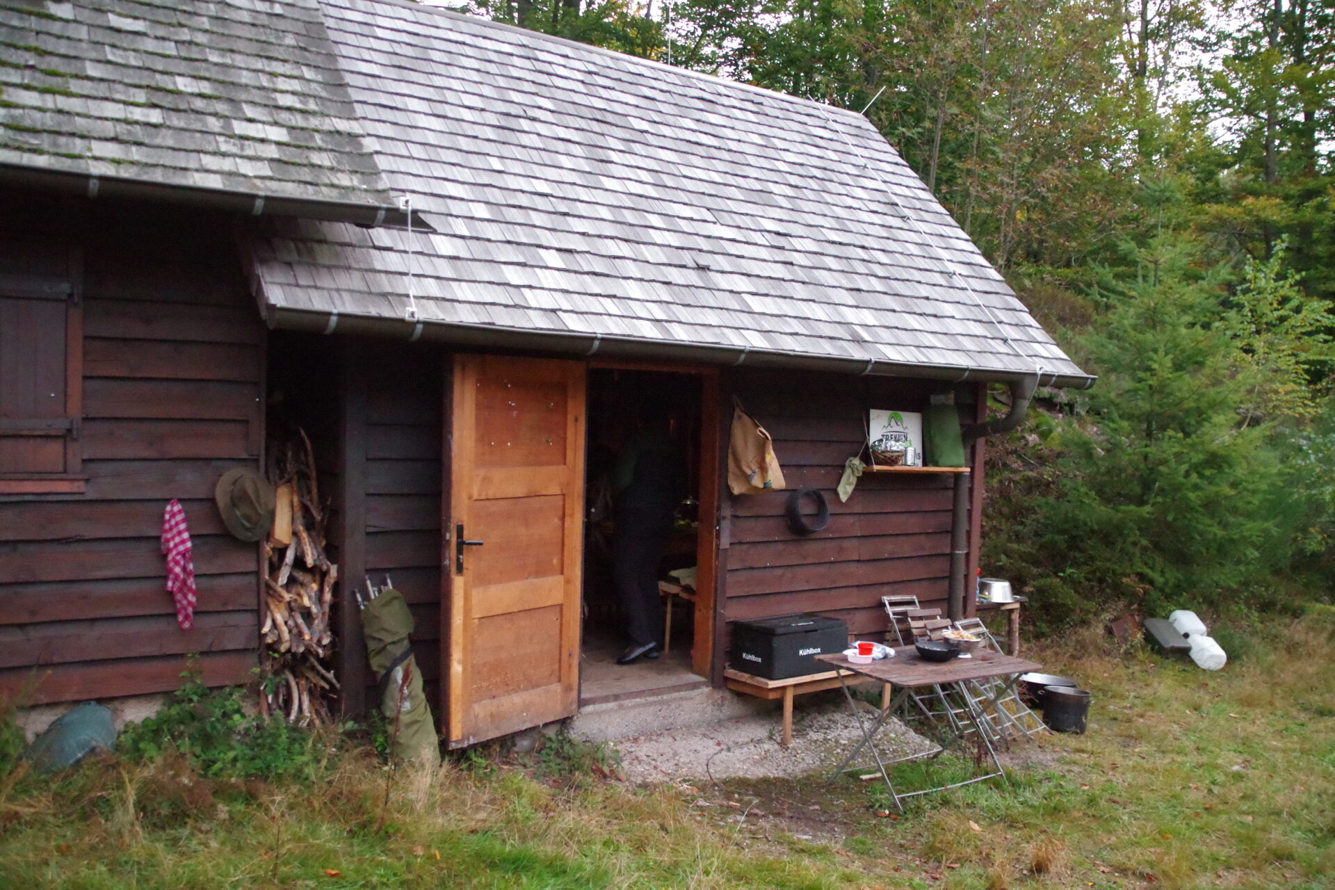 Christoph hält die Hütte in Schuss. Am ersten Abend wird dort gemeinsam gekocht. -