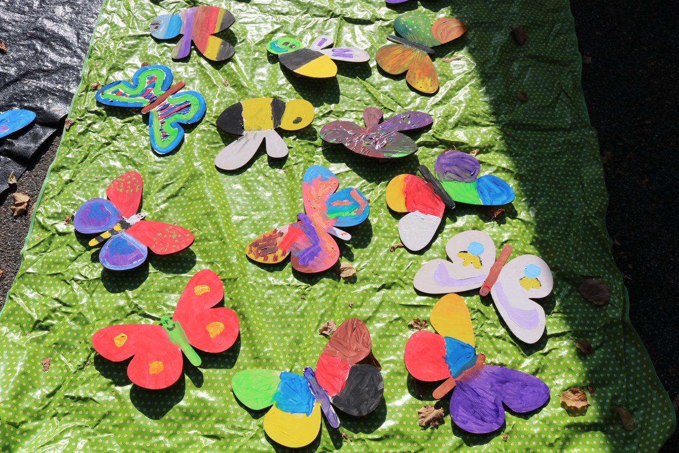 Das Gemeinschaftsprojekt „Blühende Naturparke“ war mit einem eigenen Stand auf dem Markt vertreten. Die Mitarbeiterinnen und Mitarbeiter vom Projektteam beantworteten viele Fragen zur Einsaat von Wildblumenwiesen mit gebietsheimischen Samen in allen sieben Naturparken des Landes. Mit diesem Projekt soll das drastische Insektensterben eingedämmt werden, indem mehr Lebensraum und Nahrungsquellen für Schmetterlinge, Wildbienen & Co. geschaffen werden soll. Bei den Kindern kam die Malaktion bestens an: Mit bunten Farben konnten sie Bienen oder Schmetterlinge aus Holz bemalen, um sie später im Garten aufzustellen.
