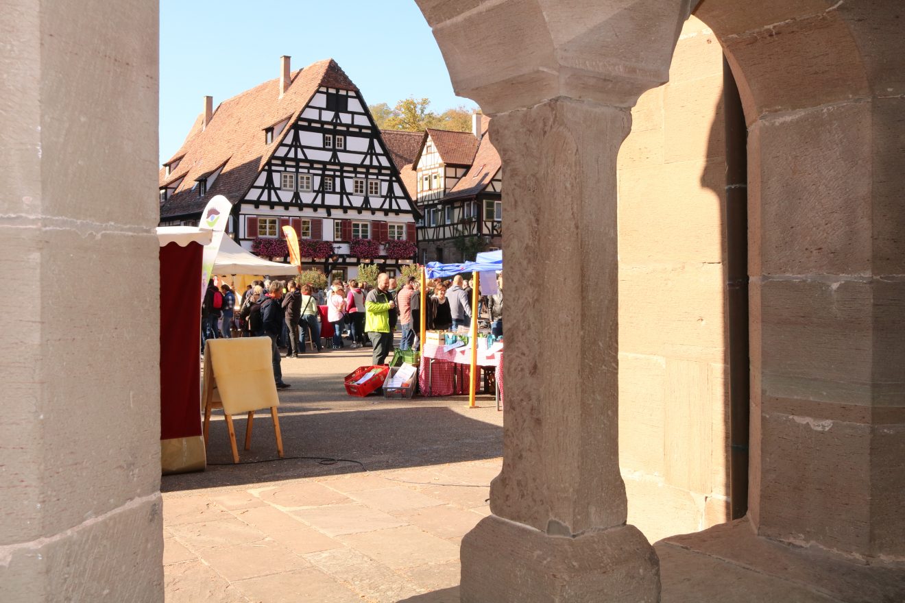 Man kann diesen Markt mit Fug und Recht die „Mutter der Naturpark-Märkte“ nennen. Denn was sonst auf den jährlich 55 Naturpark-Märkten in den sieben baden-württembergischen Naturparken geboten wird, ließ sich in diesem perfekten Ambiente geballt erleben. Über 15.000 Besucher strömten in den pittoresken historischen Klosterhof und ließen es sich gut gehen. Trotz der vielen Gäste war die Atmosphäre völlig entspannt. Die Organisatoren vom Gastgeber Naturpark Stromberg-Heuchelberg hatten dafür gesorgt, dass viel Platz zwischen den Ständen war, sodass es nirgends zu Gedränge kam.